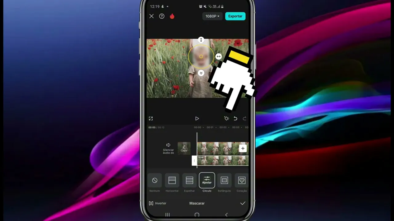 todo o meu vídeo agora setinha setinha novamente camada adicionar camada vou selecionar aqui o mesmo vídeo que eu já adicionei então eu vou adicionar ele novamente adicionar ele veio em camada então ele tá menor eu vou pinçar ele aqui vou aumentar e agora eu vou em mascarar círculo porque eu quero desfocar o rosto né então é um círculo tá vendo essas setinhas aqui essas setinhas aqui eu consigo movimentar ó posso aumentar posso diminuir olha só Aí você vai ajeitando aí da melhor forma e depois em inverter Então olha só agora só o rosto que ficou