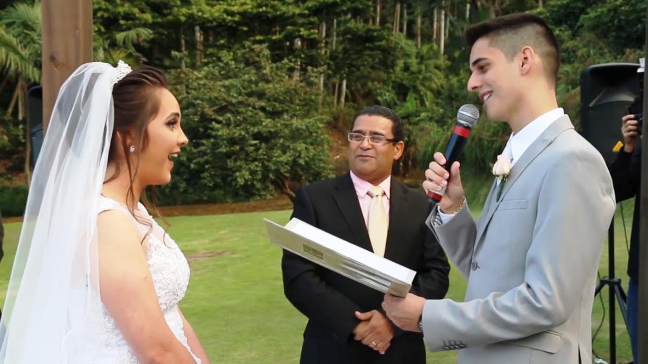 religiosa obrigada tá a cabeça vamos fazer uma oração acabamos de proceder com a cerimônia civil e vamos atentar agora no momento da benção cerimônia religiosa senhor deus que o vamos por esse passo importante que o a vitória larissa e deu debaixo da regularidade da lei do nosso país principalmente iremos aí a tua palavra e vamos apertar a bênção nupcial na vida de casal pedimos que a presença da terceira pessoa da trindade sempre conosco ela que solicitados em nome de jesus amados é interessante que a papinha que entrou em primeiro nessa cerimônia pela nicole estava escrito