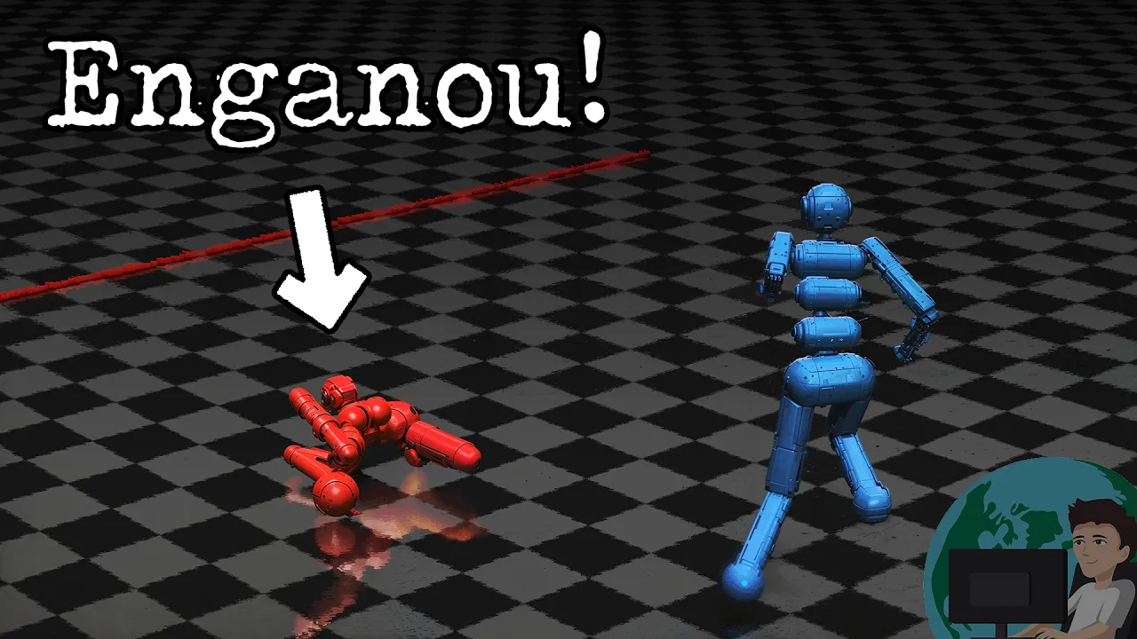 na minha frente eu também ia bugar e mano olha esse momento [Música] aqui quem está aí é você Satanás Sai fora sai fora sai sai sai sai fora no final das contas o agente adversarial consegue vencer o agente vítima 86% das vezes superando completamente a performance dos outros os agentes que foram treinados normalmente com o auto jogo e nesse momento eu espero que você esteja se perguntando por que essa doideira acontece como é possível que alguns movimentos específicos consigam estragar completamente o comportamento do agente E é claro que os autores do trabalho responderam essa pergunta