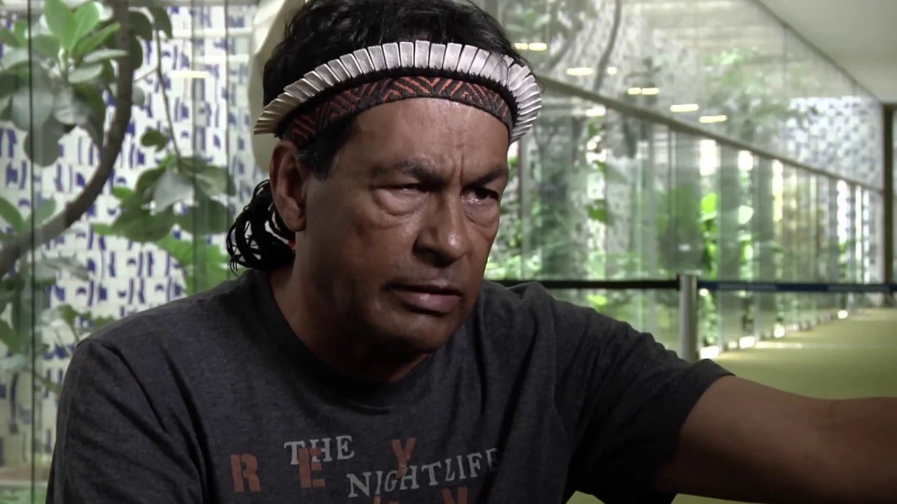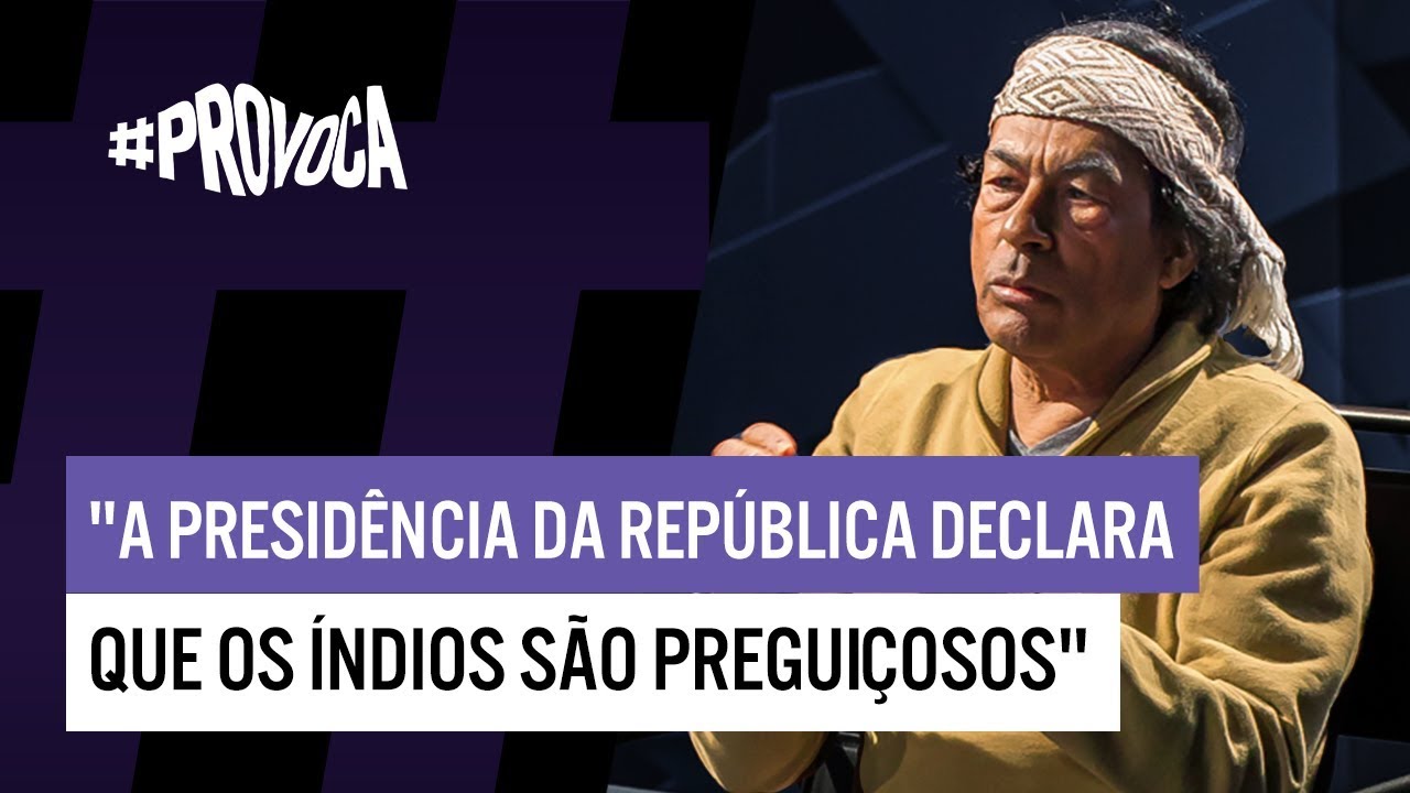 mas já foi alvo da insatisfação dos indígenas essa imagem aqui do meu rosto pintado jenipapo ela encerra uma intervenção de menos de dez minutos que eu fiz na assembléia nacional constituinte para defender o capítulo dos direitos indígenas na nossa constituição hoje eu acho que nós tínhamos que ter aqui dentro desta casa não os 10 minutos daquela defesa na constituinte mas cinco representantes nossos no congresso para defender os direitos do nosso povo aqui dentro a directora do rijo ao vivo vai viver vai já o arco que usavam antigamente hoje não é mais aquele tempo e hoje