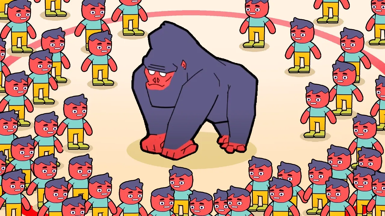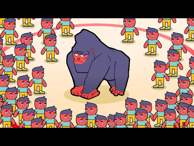 have 45. So, it's not 100 dudes versus a gorilla, but it is 45. Ooh, look how big it is. This is going to be fun. Okay, once all of our idiots manage to surround him, once they deal with everyone else, that'll be good. He killed our skeletons really quickly. Okay, now we're getting him. Yeah, now we're getting our stacking DPS and heals. Oh, yeah. He like can't even hurt us now. We got way too much healing Power. Gorilla defeated. These are the rewards. I defeated a gorilla. I don't want another vampire. Oh, here we go.