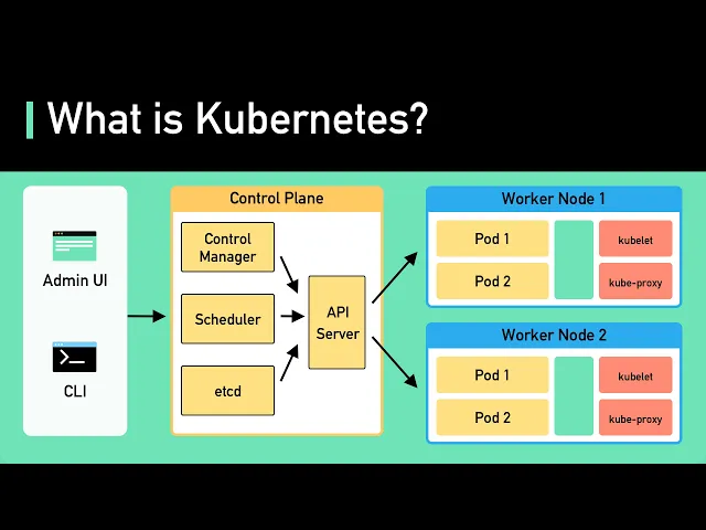 The first is the control plane. It is responsible for managing the state of the cluster. In production environments, the control plane usually runs on multiple nodes that span across several data center zones.