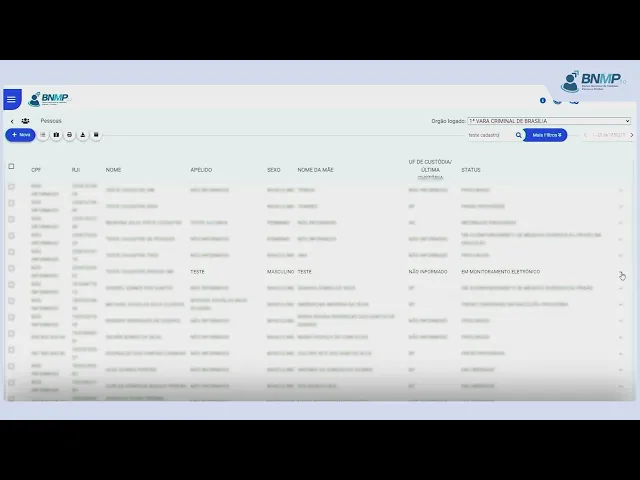 [Música] para lançamento desta peça é necessário o cadastro prévio do mandado de monitoramento eletrônico cautelar ou em execução para localizar o cadastro da pessoa em pessoas cadastradas Clique na opção ver todas no campo pesquisar digite o nome da pessoa ou outro dado conhecido e Clique na lupa identificada a pessoa clique no menu localizado no canto direito da tela e selecione a opção incluir peça em tipo de peça selecione a opção revogação do mandado de monitoramento Eletrônico em dados da peça indique o processo referente ao mandado de monitoramento eletrônico que deve ser revogado informe o motivo