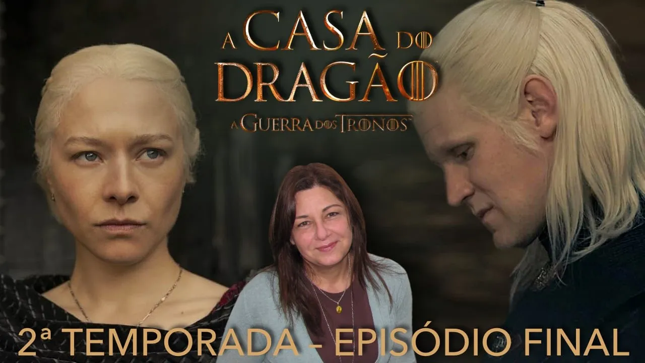 [Música] eu não sou vidente mas eu poderia postar que vai ter um monte de gente nos comentários reclamando que episódio mais sem graça esse último de a segunda temporada de casa do dragão e a minha primeira impressão quando eu assisti pela primeira vez o episódio não foi muito diferente disso na segunda vez que eu assisti com muita calma olh tudo bem de perto essa impressão persistiu um pouco mas foi muito atenuada a verdade é que eu acabei achando um monte de coisas muito interessantes no encerramento da segunda temporada Olá pessoal estamos de volta aos comentários