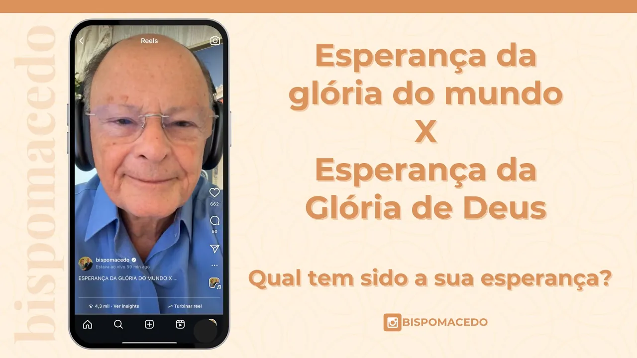 E todo mundo busca essa glória. Quem é nascido da carne busca essa glória, a glória do mundo, o reconhecimento do mundo. Mas quando o Espírito Santo fala que nos gloriamos na esperança da glória de Deus, ah, isso aí, isso aí é demais.