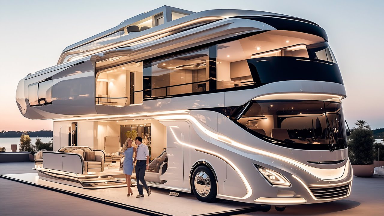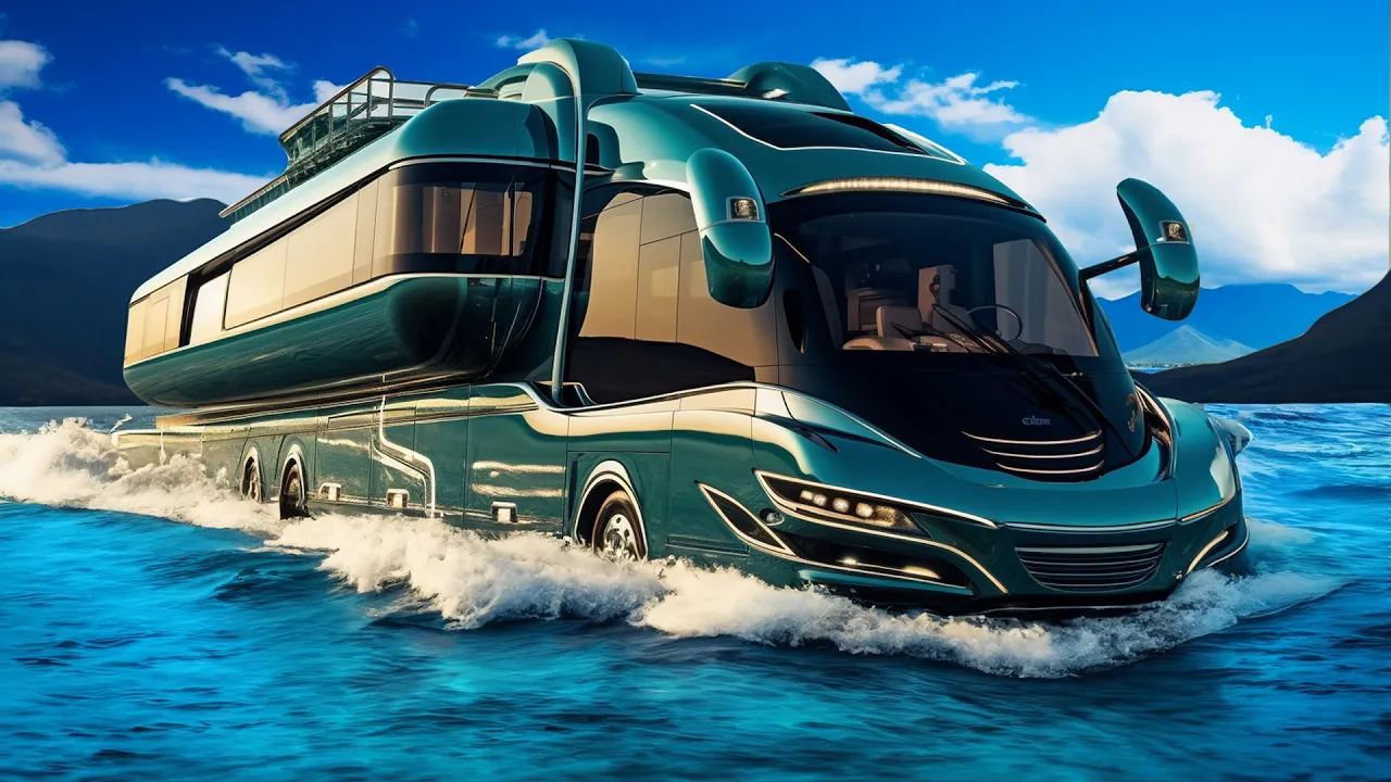 in the world of motor homes there are hundreds of different models each granting its owner different kinds of capabilities but have you ever wondered which RVs are the most ridiculous with the craziest features well you're going to find out today as we'll be revealing the top 10 most ridiculous Moto homes let's start off lowkey but with an RV that's so luxurious and futuristic that you wouldn't even believe this is only number 10 the dble model M RV which is priced at an eye-watering $1. 2 million this isn't just an RV it's a mobile mansion that redefines opulence on the road step inside and you're greeted by an interior that Rivals five-star hotels we're talking a full kitchen king-sized bed and even a spa-like bathroom and the customization options endless from a hidden queen-size bed to an adjustable coffee table you can tailor this RV to fit your every need but it's not just about looks the demo model M RV is a technological marel Advanced smart home features and top-of-the-line security systems ensure you're traveling in both luxury and safety number nine the seal van amphibious RV imagine a family vacation without compromise with the seal van you get the best of both worlds a travel trailer and a boat this turkey based startup has created two prototype models and today we're focusing on the seal van 7. 5 M this 24.