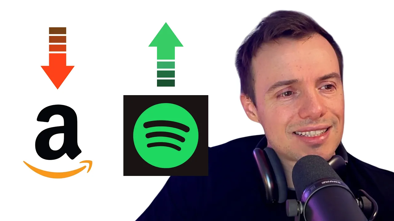 do mundo é uma boa mascada né mas o que esse cara deve se incomodar também não tá deve tá coisa de outro mundo mas é isso cara ah o que que a galera faz então nessa notícia ao ver o resultado dessas duas empresas spotfy subindo 100% no último ano e Amazon subindo 24% nos últimos se mes subindo 7% e o Spotify 30% porque a galera adora escolher né A galera faz o Cherry pick aqui do Comet que interessa eles né então sempre quando sai uma notícia dessa a ação sobe a galera diz olha só meu
