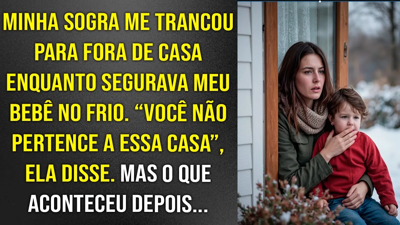 chá voltei para o quarto mas a porta estava fechada estranhei Fui tentar abrir e percebi que estava trancada então ouvi a voz de Lúcia atrás de mim você não pertence a esta casa disse friamente antes que eu pudesse reagir senti um empurrão de repente eu estava lá fora no frio segurando Davi nos braços o vento gelado Cortou minha pele como navalha eu tremia da cabeça aos pés mas meu desespero era por Davi Não por mim meu bebê com poucos meses de vida estava exposto ao frio implacável da noite bati na porta com força minha mão
