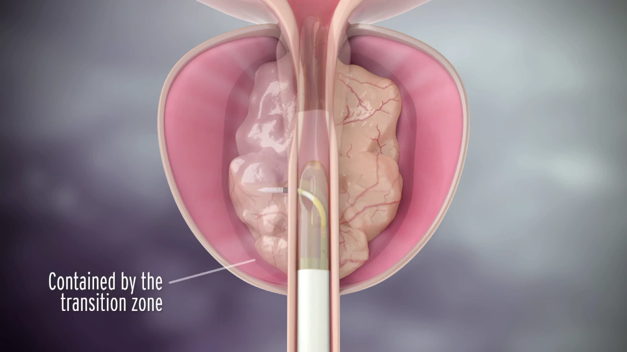 and so that steam stays in this area where the enlargement is it doesn't actually go into the area where the cancer is and actually this treatment I mean I don't know how much I'm allowed to talk about this but in the future this treatment might be used for prostate cancer by injecting the steam into different zones of the the prostate so basically it's because of the it's called the zonal anatomy of the prostate that the steam stays where you put it and we put it in the area where the prostates enlarged so these little puncture