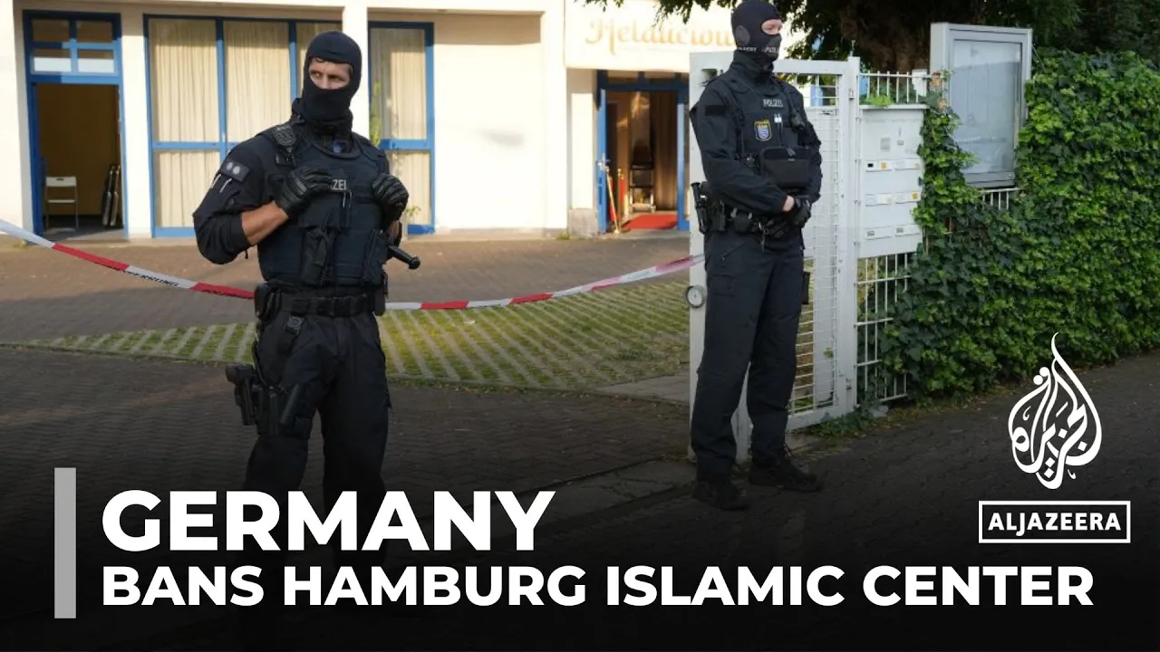 are applying one of the sharpest weapons of our law to ban this organization this is a further consequent step against islamist extremism it is very important to me to make a clear distinction we are not acting against a religion in November the Germans said they established a d direct link between the Islamic Center of Hamburg and Hezbollah and that is what led to the raid now that evidence has not been made public Iran has now summoned a German ambassador in tan nobody has been arrested so I think escalation has not reached a peig and it