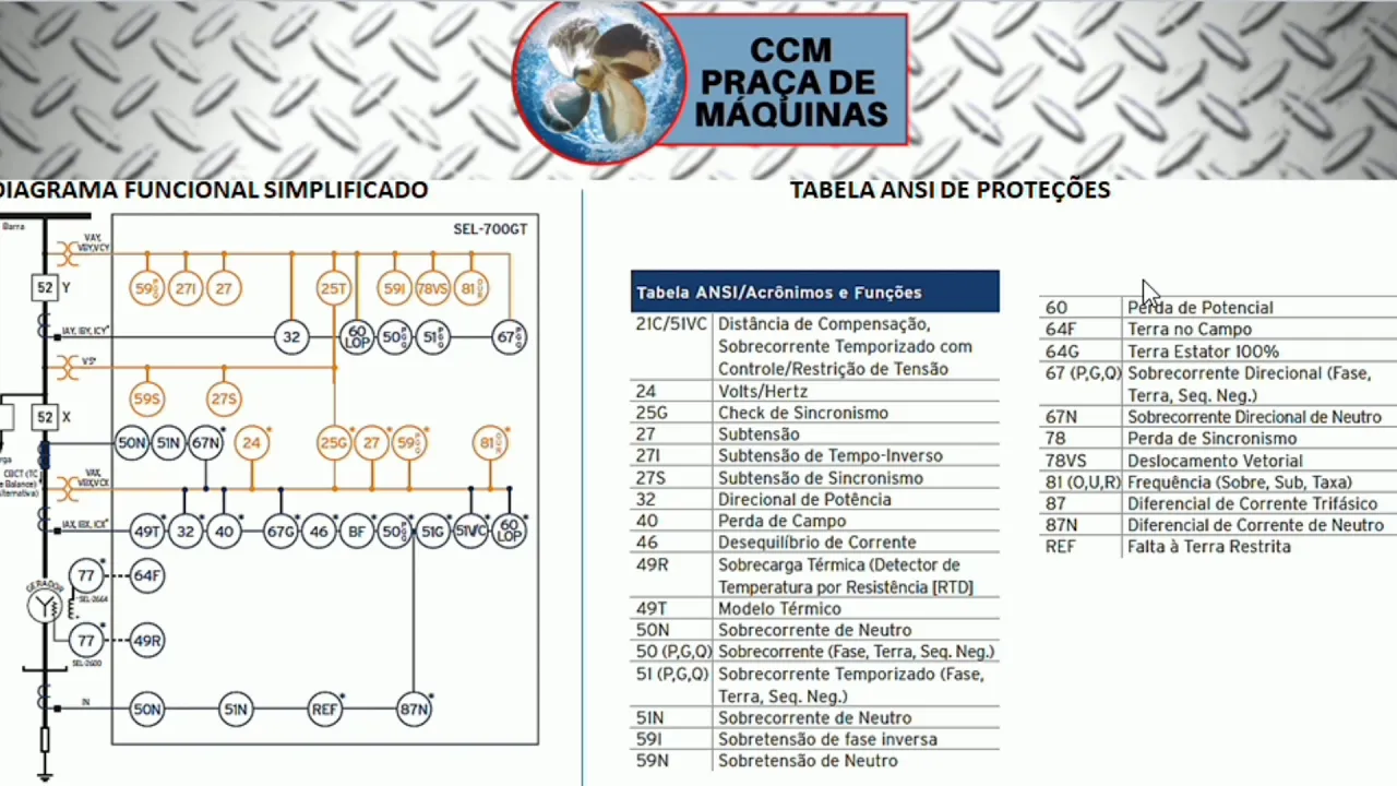 o olá bem-vindos ao canal cm essa nossa décima primeira aula uma introdução à proteção de sistemas elétricos de potência aplicados as máquinas síncronas no nosso contexto marítimo tá para embarcações plataformas a proteção que a gente vai trabalhar hoje a proteção 32 pela tabela anos e que a potência reversa que aquele momento em que o gerador ao invés de fornecer a potência ativa e reativa ele passa a consumir ativa e reativa até um determinado limite em que o o relé Lips a Trial juntou e seccionar o gerador Tá mas vamos começar pela base de tudo pelo
