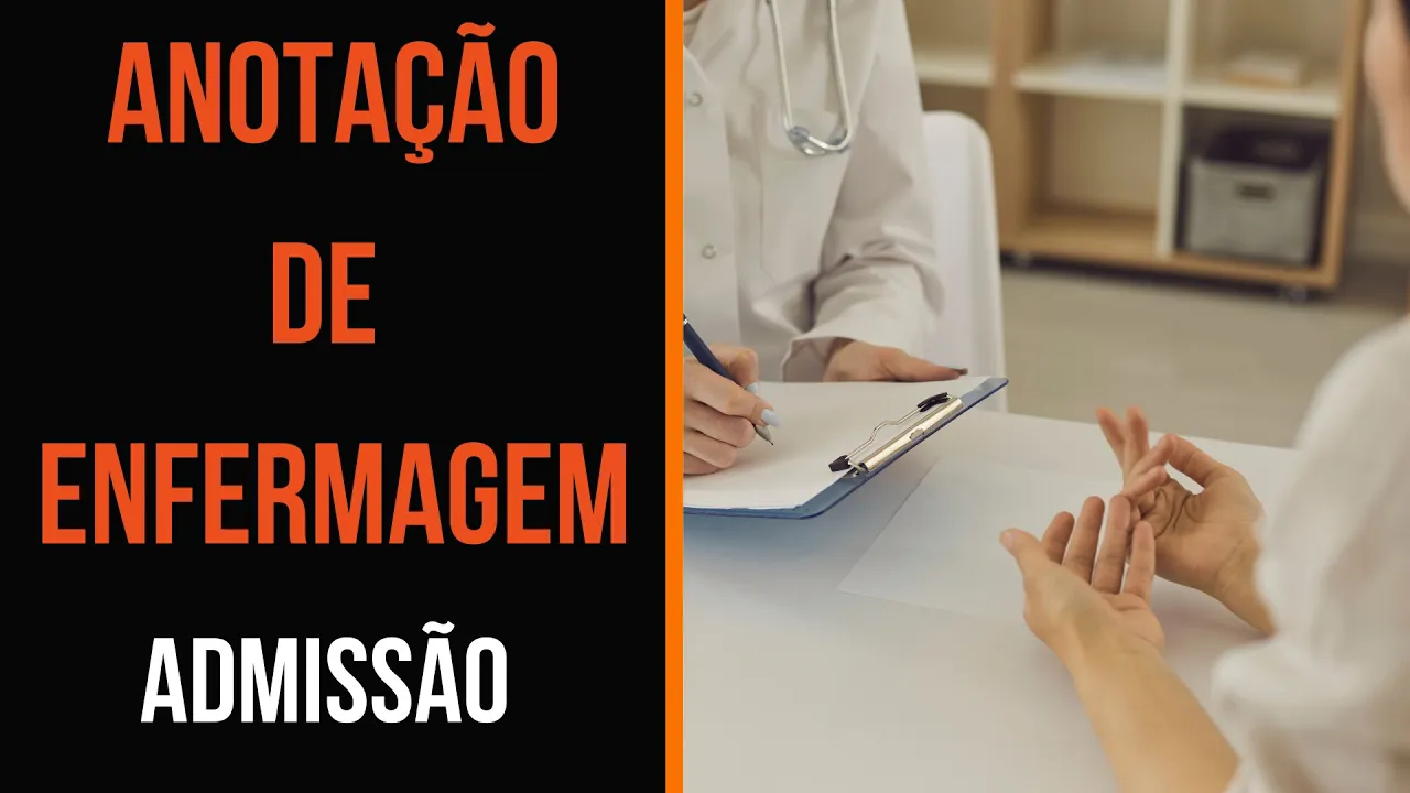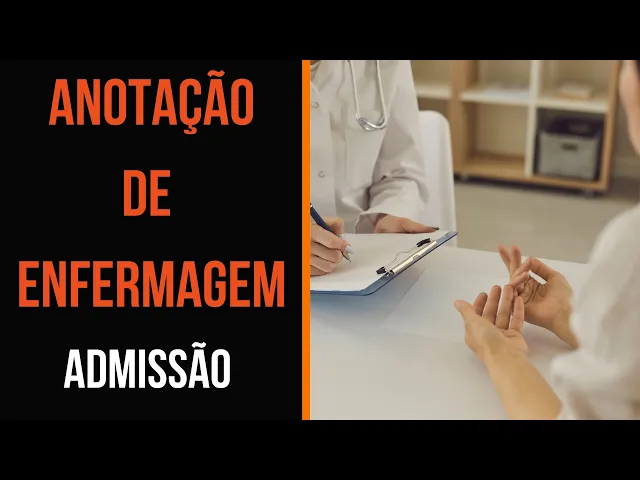 [Música] no vídeo de hoje você verá um modelo de como realizar a notação de enfermagem de admissão para realizar esse tipo de anotação é necessário anotar procedência de onde o paciente veio residência transferência de outra instituição outro setor intra-hospitalar exemplo transferido do centro cirúrgico para a clínica cirúrgica acompanhante quem está acompanhando o Passeio Familiar vizinho amigo profissional de saúde condições gerais de entrada são as condições que o paciente entra é dividido em nível de consciência está consciente ou inconsciente orientado ou desorientado estado de humor calmo nervoso choroso condições de locomoção de ambulando deambulando com auxílio