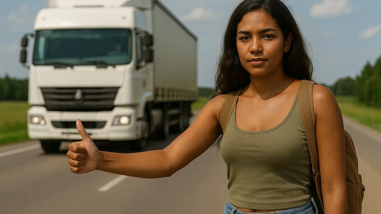 desculpe a bagunça. A cabine é meu escritório, sala de jantar e quarto tudo junto. Ela jogou a mochila no chão da Cabine e se acomodou no banco. De perto, notei que era mais jovem do que parecia à distância. talvez uns 30 anos, não mais que isso. Tinha mãos pequenas, mas com calos visíveis, mãos de quem trabalha duro. "Meu nome é Moacir", falei enquanto voltava para a estrada, checando os retrovisores por reflexo. "Renata", ela respondeu simplesmente, não ofereceu sobrenome. Liguei o rádio num volume baixo, um sertanejo antigo, daqueles que a criançada de hoje nem Conhece, e