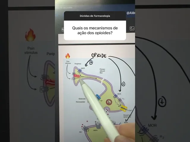 os opioides são agonistas de receptores opioides que recebem esse mesmo nome né o principal receptor que a gente estuda é o receptor mi opioide que é um receptor relacionado ao processo doloroso então assim a gente vai pensar num estímulo doloroso estimulando um neurônio essa informação vai sendo desencadeada até o sistema nervoso central onde a gente vai ter percepção de dor quando os opioides estimulam esse receptor que são receptores acoplados a proteína Gi elas vão inibir uma cascata de sinalização in bindo que esse neurônio aqui envia informação da dor só que mesmo assim Pode escapar alguns