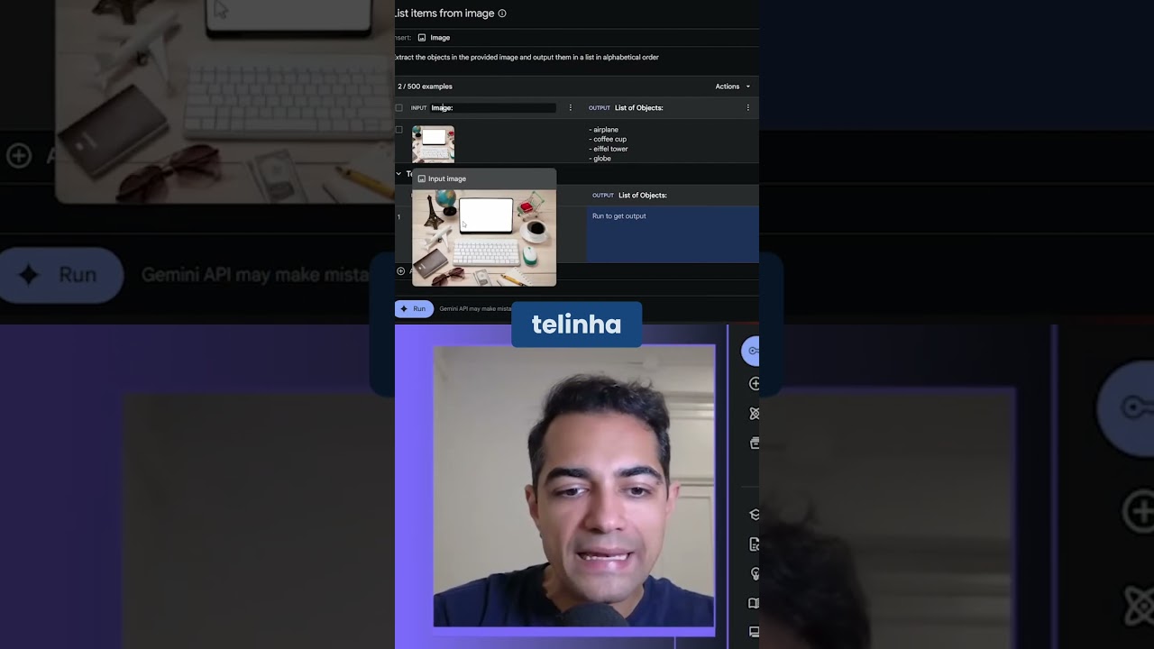 6 405 9. 5 então ele conseguiu também analisar essa parte aqui desse documento bem interessante agora eu quero mostrar também a parte de vídeo para vocês então vamos criar um novo prompt aqui no chat prompt Você vai no mais upload to drive e eu tenho um vídeo aqui que foi exatamente um dos últimos vídeos da nossa web série de Mas como ele é bem grande vocês estão vendo aqui ó quase 900 Meg eu vou pedir pro editor cortar aqui rapidinho até isso aqui tá carregado para vocês bom agora que o vídeo tá carregado vocês podem ver eu vou aproveitar para explicar uma coisa vocês podem ver aqui embaixo esse 4348 31 tokens e aqui do lado direito também tem o token count né mostrando Exatamente esse valor e aqui o limite máximo né que é 1 milhão e alguma coisa de tokens um quando a gente tá falando de texto ele é meio que uma subp palavra então eu tento explicar sempre imagina que a gente tem a palavra infeliz isso geralmente poderia ser dividido em dois tokens o token in que ele é usado em outras palavras também como indivisível e o token feliz que pode ser usado sozinho também né então eles geralmente fazem esse processo que é chamado de tokenização que é dividir palavras em partes em partes menores né sub Palavras só que isso também tem sido usado para áudio para vídeo e aqui ó a gente pode ver que esse vídeo teve 24 minutos e meio e deu Aqui ó quase metade do 1 milhão ou seja esse modelo aqui o Gini 1. 5 pro atualmente que ele tá com esse limite de 1 Milhão ele consegue analisar vídeos de até uns 50 minutos né que é o dobro um pouquinho mais 55 1 hora algo em torno disso e esse vídeo que eu mandei como Eu mencionei ele é um vídeo que eu gravei pra websérie de a aqui do canal da lura mas esse é o bruto ele é o vídeo antes de ser editado Então vou pedir para ele assista então a gente pode até antropomorfizar o modela um pouquinho esse vídeo e me diga de que ele trata Vamos dar um Run aqui talvez ele demore um pouquinho mais para analisar porque ó lá antes a gente estava fazendo Em 2 segundos esse daqui são 24 minutos de vídeo né então é bastante coisa então eu vou pedir pro editor cortar aqui até quando a análise tiver pronta e olha voltando aqui ó ele já conseguiu analisar depois de 44 segundos mais ou menos o vídeo trata de como construir um chatbot que se comunique com a api do Gemini Era exatamente disso que se tratava esse vídeo link dele tá aqui na descrição você pode assistir Se você ainda não assistiu também o modelo mais poderoso do Google ele te ensina passo a passo como instalar o pacote do Jini importar o código obter a sua IPI aqui no Google a Studio que você pode obter aqui nesse canto superior esquerdo o apresentador Fabrício Carraro também destaca a importância de manter a segurança da sua iq o episódio é um oferecimento da EA com FRS brasil24 que acontecerá em São Paulo no dia 21 de agosto então ele pegou várias coisas conseguiu analisar o vídeo né a parte visual conseguiu analisar também a parte do áudio né O que tá sendo falado então é uma ferramenta poderosíssima que você consegue usar tanto assim né nesse chat mandando uma coisa e recebendo Mas você também consegue por exemplo fazer um chatbot né mandar e receber coisas que é uma coisa extremamente útil né pro seu trabalho pra sua empresa ou talvez até pro seu projeto pessoal e uma última coisa que eu vou mostrar nesse Episódio de hoje para vocês é a galeria de prompts Na verdade eu quero mostrar uma outra coisa que é aqui ó quando a gente cria um novo prompt vocês devem ter notado que a gente tem o chat prompt que é o que a gente estava usando e a gente tem essa outra opção de structured prompt que é um prompt estruturado quando você clica nele ele dá coisas diferentes né então ó input output em vez de escrever aqui na mão eu vou fazer uma outra coisa vou mostrar aqui do lado esquerdo tem essa prompt Gallery do Google eu vou abrir ela para vocês verem e aqui tem várias opções uma galeria de prompts que o pessoal do Google colocou para você ver como usar melhor o Gini né O Google é a Studio na verdade e eu vou escolher esse daqui que eu já vi anteriormente que é list items from image listar os itens de uma imagem e aqui ó ele tá exatamente nesse structur prompt Ou seja a gente tem um input do lado esquerdo que é uma image uma imagem e a gente tem aqui Um output que é uma saída que você pode colocar né então ó nesse input aqui ó tem é uma telinha tem um teclado tem uma torre afel tem um mundo tem um carro de um super um mini carro de supermercado um café um mouse várias coisas óculos escuros passaporte um aviãozinho e é que você mesmo poderia do lado direito que é o output Ou seja é o que você quer obter dessa imagem o que você quer que ele faça para você então aqui vamos supor que o que eu quero é simplesmente listar o que tem aqui então Ó tem um Airplane né que é um avião em inglês tem um coffee Cup que é um um copo de café uma xícara de café tem uma torre EA tem um globo então ele vai entender ah o que o Fabrício quer é que o Liste o que tem os itens que tem nessa imagem usando essa aqui esses Bullet points né esses tracinhos para listar todos os itens isso aqui tá em inglês só que vamos dar um CRL C nisso daqui jogar lá no no Google Translate e jogar pro português então eu vou colocar tudo pro português vou substituir isso que tá aqui olha ele tinha uma outra opção aqui também ó vou até tirar o zoom para vocês verem melhor ó tinha essa e tinha essa aqui ó que tem um um b um balde né um um regador Na verdade uma planta uma luva e aqui mesma coisa né tem as coisas em inglês eu vou traduzir tudo isso aqui pro português então o que você tá fazendo aqui é dar você tá dando dois exemplos estruturados de o que você quer que ele faça então ó para essa imagem eu quero que você a resposta esperada é essa para essa imagem do