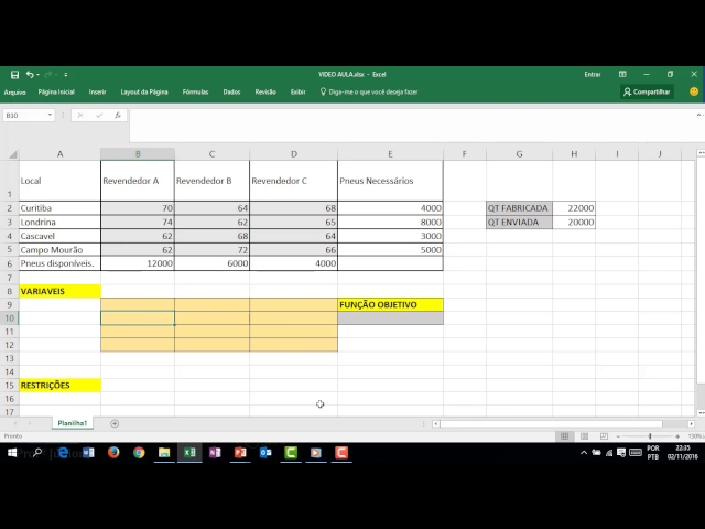 modelagem de transporte com SOLVER