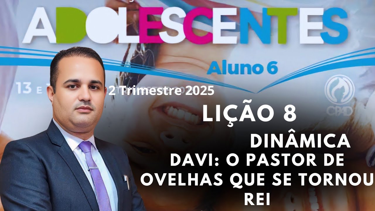 CJDB. E para mim é um privilégio poder contar com a sua participação. Nesse canal você vai encontrar vários vídeos relacionados à Escola Bíblica Dominical, a nossa famosa EBD. Toda semana estamos postando videoaulas e também dinâmicas de adultos até dias de de infância. E só peço o seguinte, se você gostar, se inscreva no canal, ative o sininho, vem participar da nossa família crente. Mas agora, sem demora, vamos paraa nossa aula, lição de número nove dos adolescentes do segundo trimestre de 2025, que traz por título o reinado de Davi. Veja só, se você é professor, sempre recomendo