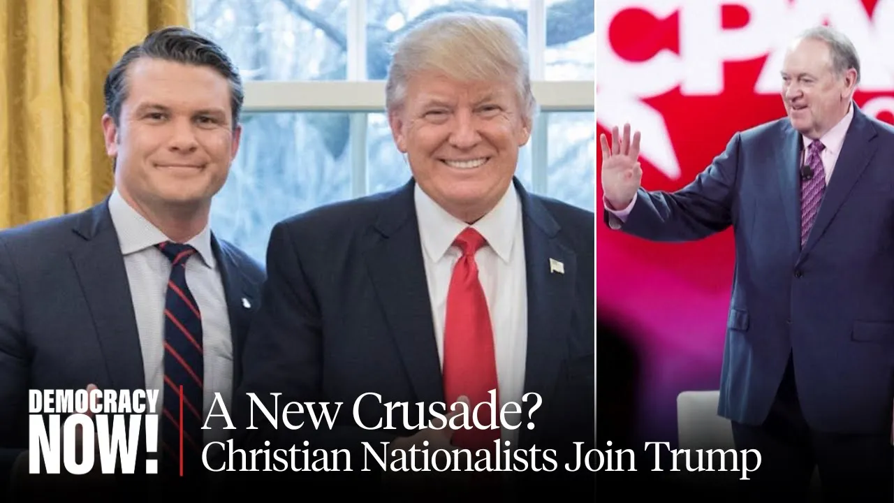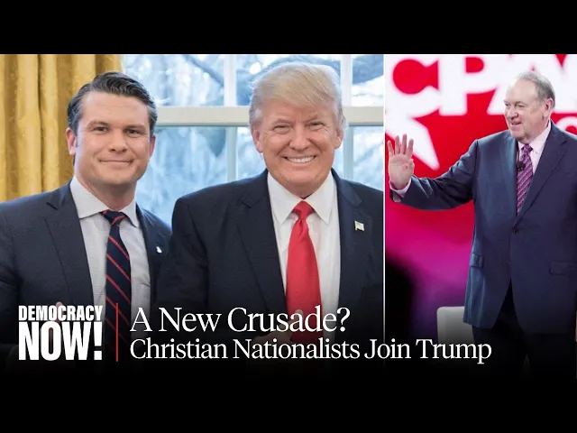 this is democracy Now democracynow.org War peace in the presidency I'm Amy Goodman in Denver Colorado broadcasting from pbs2 right here in Five Points Media Center also home to our colleagues at Free Speech TV a wonderful Media Center joined by democracy Nows Nur she in New York concerns are mounting over Trump's pick to lead the Pentagon Fox News host and Military veteran Pete heith CBS news reports hexi was one of 12 National Guard members who were removed as guards for President Biden's 2021 inauguration over possible extremist ties hexi has tattoos associated with the white supremacist and