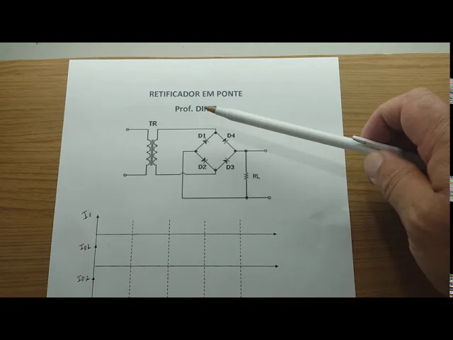 o Olá pessoal sou professor Diniz e hoje eu vou ensinar para vocês como é que funciona o retificador em Ponte a gente vai notar primeiramente Qual é o transformador que eu tô utilizando aqui ao contrário do transformador anterior que a gente viu lá no vídeo retificador em onda completa você vir aqui no no secundário do transformador Havia três fiozinhos aqui esse terceiro fio ou fio Central A gente conhece ele como Center tape correto no caso do retificador de ponte você não usa um transformador com Center tape Você pode até usar mas se você não vai