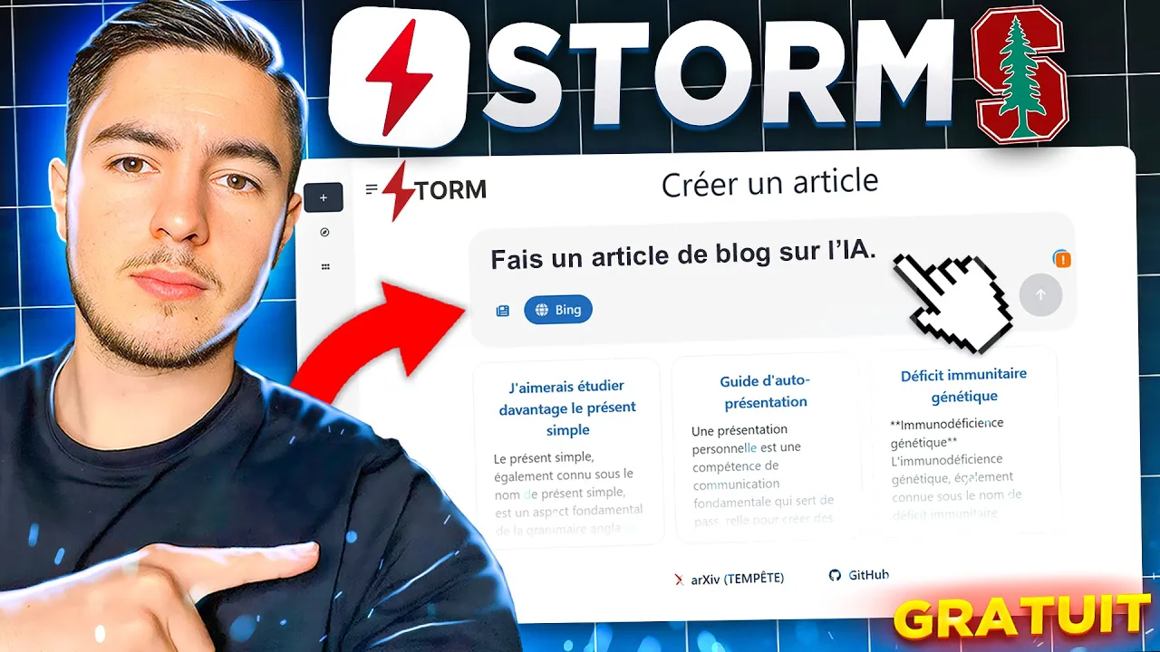 l'université de Stanford a récemment publié un outil Ia gratuit qui est très performant et qui vous permet de générer des articles de blog avec une précision et bien qui peut égaler certains outils du même genre bonjour à tous c'est Julien j'espère que vous allez bien et aujourd'hui dans cette vidéo je vais vous présenter un outil qui va être très utile pour vous si jamais vous faites souvent des articles de blog grâce à l'intelligence artificielle vous savez déjà sans doute vu la limite de chatpt pour faire ce genre de tâche quand on demande beaucoup de rédaction il faut découper sa tâche sinon on va obtenir et bien un texte qui va être trop petit par rapport à la norme de ce qui est un article de blog mais vous allez voir qu'avec l'outil que je vais vous présenter aujourd'hui vous allez pouvoir faire cela entièrement gratuitement et surtout avec une qualité qui est vraiment très haute et pour bien vous faire comprendre cela je vais vous expliquer le fonctionnement de cet outil parce que je pense que le raisonnement est très intéressant à comprendre pour pouvoir vous aussi faire de même sur n'importe quelle plateforme en tout cas n'hésitez pas à vous abonner ma chaîne youtube si ce n'est pas déjà fait et n on est parti sans plus attendre pour commencer cette vidéo avec l'outil de stford cet outil le voici c'est tout simplement Storm Storm qui va nous permettre du coup de faire par exemple ce genre de petites choses où est-ce qu'on va avoir des exemples qui nous ont été montrés pour comprendre la puissance de cet outil ici le sujet c'est le modèle de communication d'Aristote ça peut être sur n'importe quel sujet et ce que je vaux vous montrer ici c'est que la taille des réponses est énorme et surtout super bien triée grâce et bien un petit navigateur sur la gauche une table des matières où est-ce qu'on pourra tout simplement naviguer par exemple ici en cliquant là bah on remonte ici bref quelque chose de très intuitif de sourcé également on peut voir avec des références des liens bref quelque chose de très intéressant j'avais d'ailleurs fait moi-même et bien quelque chose sur l'impact de la caféine sur le sommeil et on peut voir que c'était vraiment détaillé avec chat GPT je n'ai pas du tout ce genre de réponse aussi complète d'autant plus que c'est un outil qui est entièrement gratuit à l'URE actuel et je vous invite à aller le tester rapidement parce que ce genre d'outils qui sont gratuits vont souvent être indisponible parce que c'est simplement pour se faire connaître un petit peu ou simplement faire des betta testing des phases de test ou est-ce que les utilisateurs peuvent l'utiliser comme avec Google donc je vous invite vraiment à l'utiliser dès maintenant ici voici encore plus bah de d'articles et de sujets on peut voir que on a quelque chose de plutôt scientifique mais vous allez voir qu'on peut aussi faire d'autres choses pas que des choses scientifiques et ça va être super intéressant pour produire du contenu textuel assez long souvent basé sur des inf formation qui doivent être vérifié ou fraîche et cet outil je l'ai présenté ce weekend dans ma newsletter la lettre il insiders dans laquelle je partage un petit peu ma vie mais aussi surtout de l'intelligence artificielle parce que regardez j'ai montré exactement comment fonctionnait cet outil entièrement dans ce mail j'ai pris pas mal de temps à le rédiger parce que je voulais faire quelque chose d'impeccable et surtout et bien de qualitatif alors n'hésitez pas à aller rejoindre la newsletter elle se trouve en description elle est entièrement gratuite et avant de commencer à le tester il faut comprendre comment comment ça fonctionne et comment se définit cet outil Storm ici voici les études qui ont été réalisées avec cet outil et globalement ce que j'ai fait c'est que j'ai pris ce pdf et j'ai tout simplement demandé à chatpt de me résumer sous forme de listap plus le PDF on peut voir que Storm se définit comme un outil qui va rédiger du contenu long des articles longs et organisés comparable aux pages de Wikipédia et ça c'est quelque chose qui va souvent revenir et donc pour faire cela on a storm qui va faciliter la rédaction d'articles via la recherche et la création d'un plan structuré on a le processus qui est décrit premièrement on va voir une recherche ensuite une conversation simulée création de plan et rédaction de l'article mais évidemment ça je vais vous montrer en direct et apparemment on utilise des modèles langage type GPT 3. 5 et gpt4 bon je sais que vous mourrez d'envie alors c'est parti on va commencer à le tester et je vais vous montrer comment on l'utilise premièrement il faudra simplement serendre sur stor. gnie.