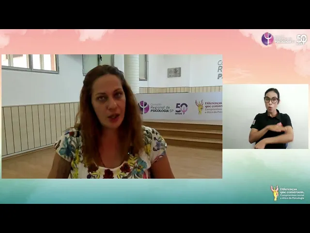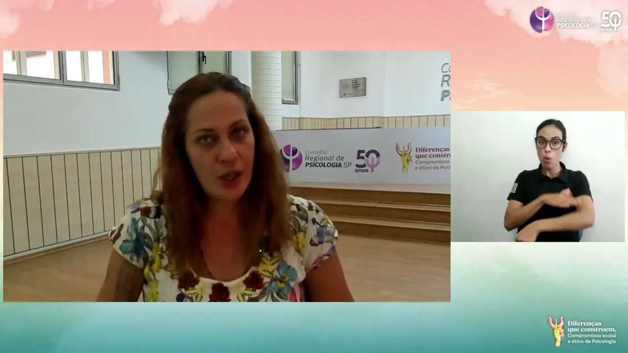 Olá sou Talita Carvalho Sou psicóloga conselheira do 17º plenário do crp São Paulo sou uma mulher branca gênero tenho os cabelos avermelhados pintados em caracolados na altura dos ombros estou sentada numa cadeira com fundo roxo e Uso um vestido de fundo branco com borboletas coloridas