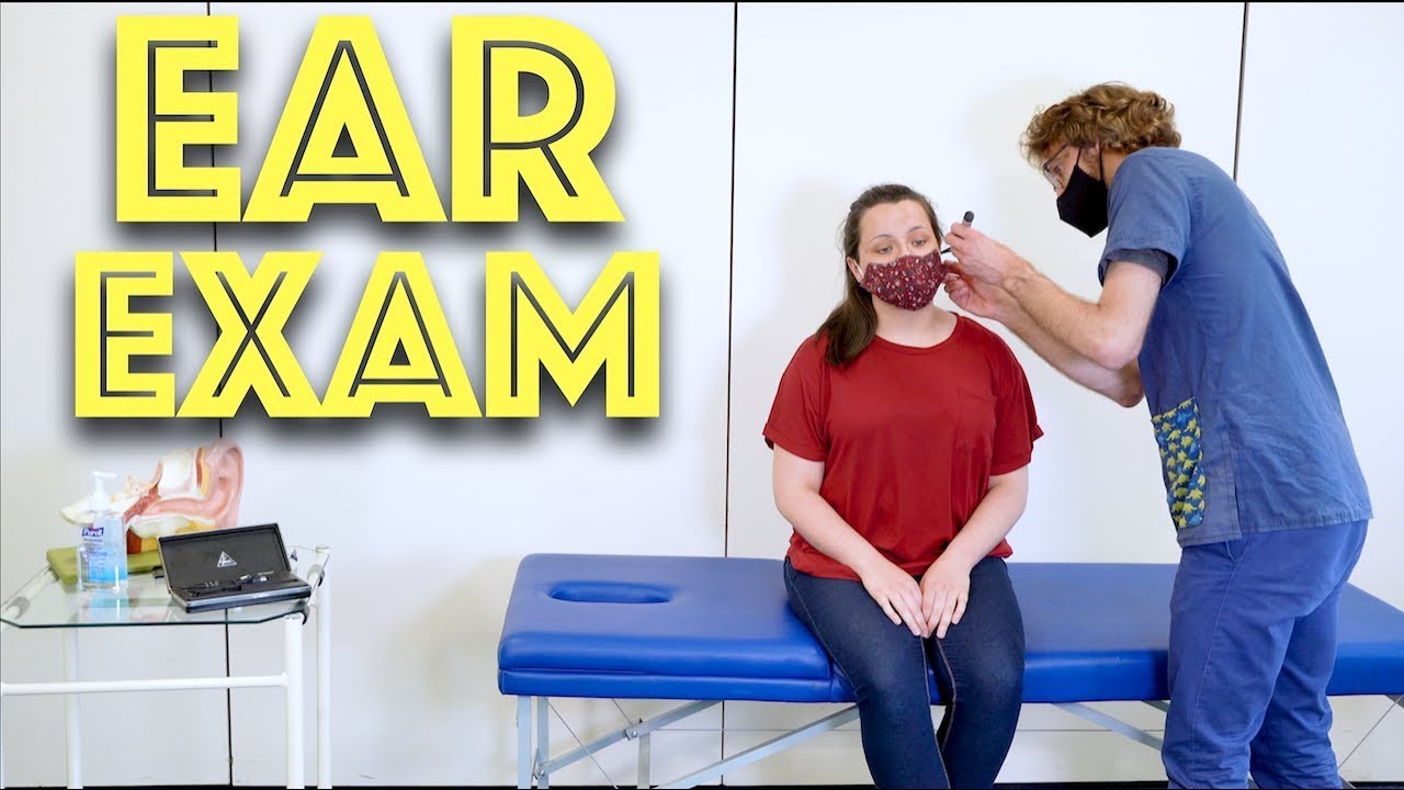 [Music] hi my name is Andrea one of the finally our medical students go just confirm your name and date of birth please sure let's change the teeth of December 1989 nice to meet you James today I'd like to examine your ears this will just involve looking inside the ears with a piece of equipment called the otoscope and then using a number of different tests to examine your hearing would that be okay yeah that's fine okay James are now gonna start with a simple hearing test I'm gonna stand behind you and I'm gonna speak three different
