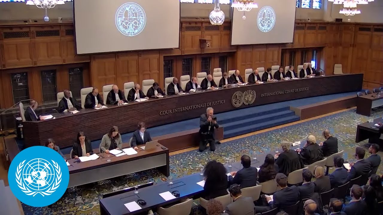 La cour [Musique] [Musique] please the sitting is open the cour meets today pursu to article 67 of the Statute to deliver its advisory opinion on the requ submitted by Assem of the United nation on the and prtic of Israel in the Occupedestinian territory including Jerusalem the questions on which the advis opinion of the cour has been requested are set forth resolution 77 bar 247 adopted by the United nation assembly on December 30 2022 by a letter dated 17 January 2023 and received by the registry on January 19 2023 the secretary general of the United Nations