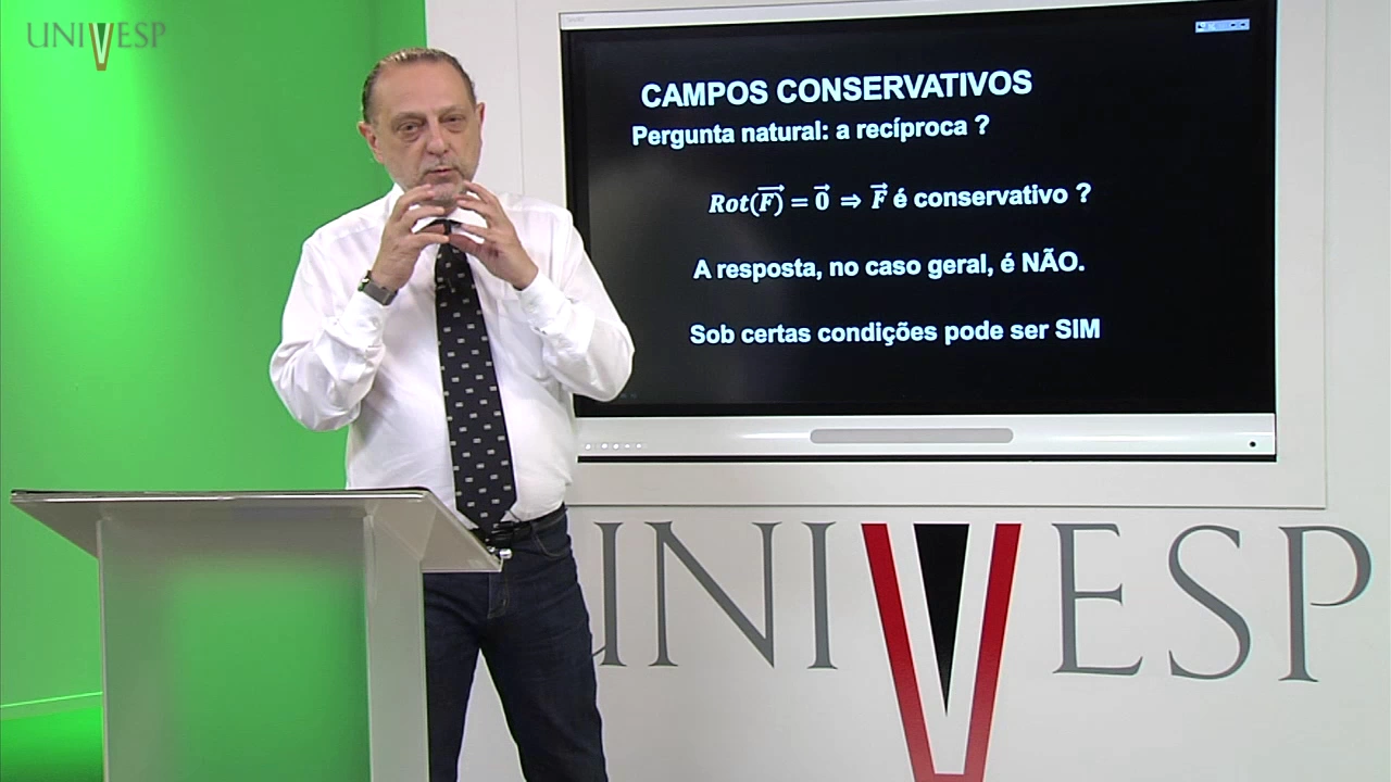 do campo será diferença de potencial não depende da curva só do ponto inicial e final e é a diferença de potencial exatamente a função potencial calculado no ponto final - a função potencial calculado no ponto inicial daí diferença de potencial a condição 3 era que a circulação ou seja integral de linha do tipo trabalho sobre curvas fechadas sempre nula essas três condições equivalentes se o campo satisfaziam uma e portanto as outras automaticamente opção equivalentes se satisfaz uma e portanto todas as três deles chama-se conservativa e nós também mostramos que se ele é conservativo rotacional do