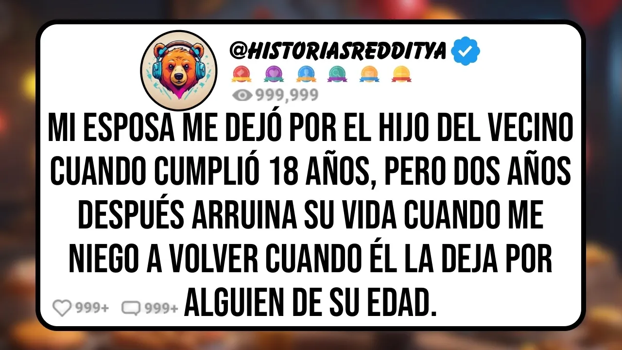 mi esposa me dejó por el hijo del vecino cuando cumplió 18 años pero dos años después arruina su vida cuando me niego a volver cuando él la deja por alguien de su edad no estaba seguro de si esto pertenece a alguna de esas cosas sobre los suegros aquí ya que las personas involucradas técnicamente ya no son mis suegros pero voy a publicarlo aquí de todos modos puedo publicarlo en otros lugares si alguien sugiere hacerlo aviso obligatorio Esta es una cuenta anónima todos los nombres son falsos para proteger la identidad la versión larga viene a continuación