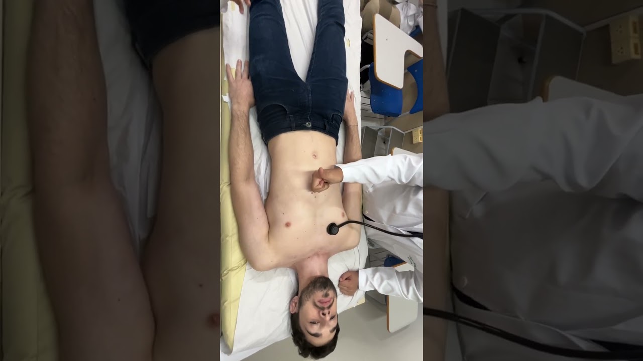 vamos lá pessoal vou fazer a palpação do tórax do paciente no exame cardiovascular ok a gente procura o quê três coisas né vibrações frêmitos pulsações no tórax e o ictus có ok a gente vai dividir o tórax em três direito médio e esquerdo e vai realizar palpação Ok começando o tórax direito ó mão totalmente apoiada sobre o tórax ó um aqui ó sente sempre procurando fremitos e batimentos Ok batimentos acessórios batimentos que não é na região precordial e pode estar acontecendo aqui a custa de uma CIO a custa de uma de uma hipertrofia Ok direita