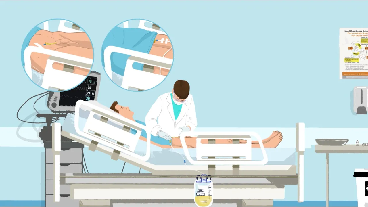 demora se a indicação correta ou por tempo além do necessário pode provocar complicações infecciosas desconforto para o paciente aumento do tempo de internação e dos custos em saúde alguns fatores contribuem para a ocorrência desta infecção um deles é a não utilização de Barreiras estéreis durante a inserção do cateter os fatores são a realização de procedimentos como inserção de cateter vesical de demora e a coleta de urina com as mãos contaminadas boa bolsa coletora posicionada inadequadamente como acima do nível da bexiga ou encostada no chão e como podemos prevenir esse tipo de infecção a principal medida