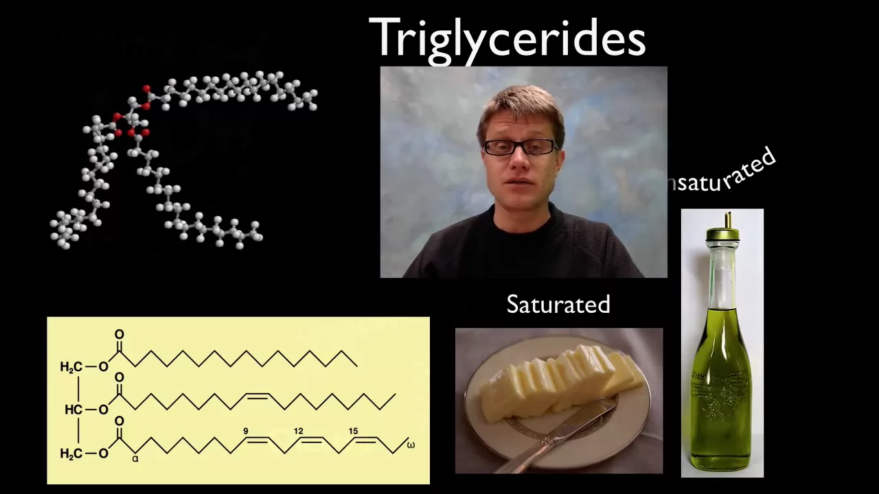 And if they're all straight they can pack up on top of other triglycerides. And so saturated fats are normally going to be a solid at room temperature. What happens if you don't have hydrogen all the way around the outside?