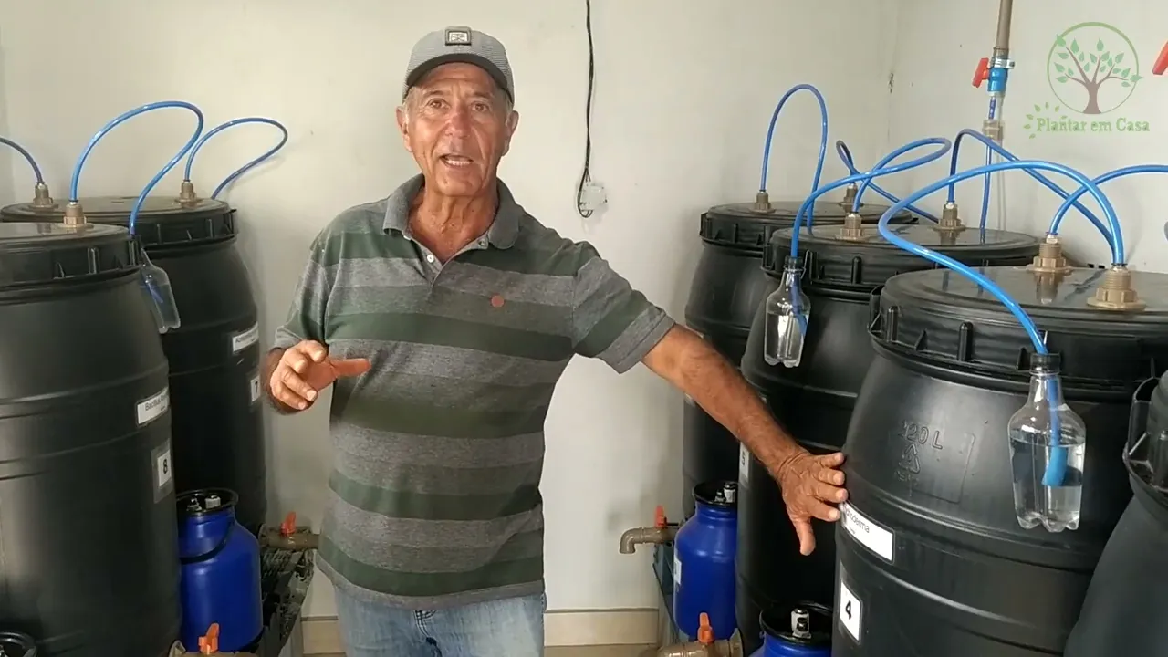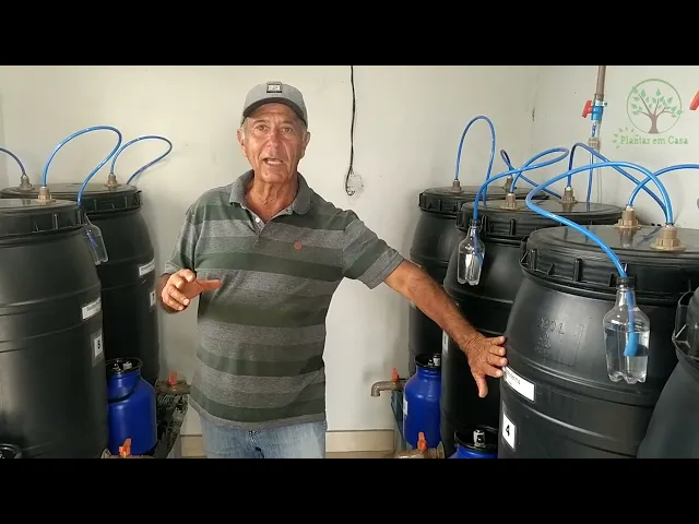 isso aqui isso aqui é para resolver a vida do agricultura do pequeno amigo Doutor principalmente muita gente nós no nosso grupo nós fizemos sete dessas aqui cada um multiplicou alguns Alguns microrganismos em todas diferentes por causa da atividade que a pessoa desenvolve o sistema parece um sistema absurdo né a gente usa como reator Tem um aerador aqui esse sistemas aqui são sistemas de engate rápido por exemplo porque tudo assim ó se desengatou aqui você quer engatar aqui esse papo aqui liga ali você tira põe aqui rapidamente e aqui você controla a entrada de ar enfim