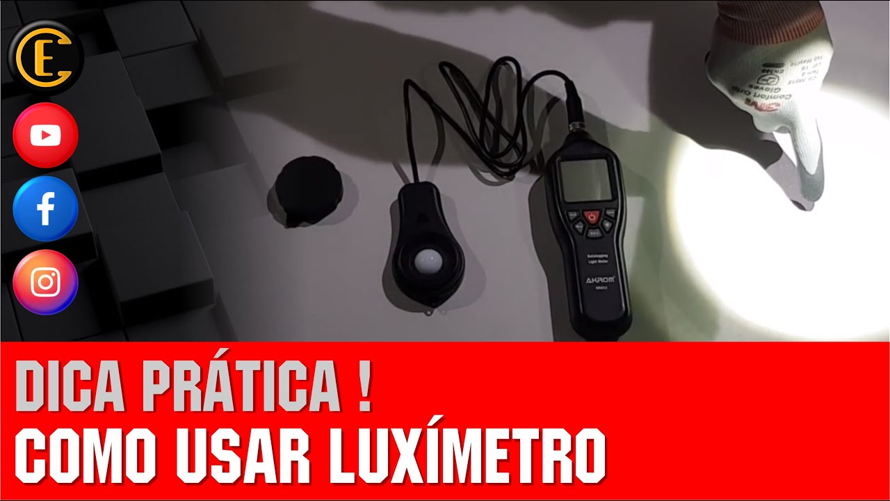 Olá pessoal nesse vídeo eu vou estar mostrando para vocês um luxímetro digital luxímetro é um aparelho que serve para fazer medidas de iluminância esse modelo é o mlm 1011 da Minipa vou est mostrando para vocês o funcionamento e como fazer medições com esse luxímetro um aparelho usado pro pessoal que trabalha com luminotécnica e inspeção de iluminação de ambientes esse aqui é o luxímetro um aparelho muito simples de ser usado inclusive ele vem o corpo do aparelho e esse aqui é o medidor é o que vai fazer a leitura da iluminação tem aqui uma bolinha branca que tem um sensor aqui dentro que consegue captar uma quantidade de luz e fazer aí as conversões e mostrar para vocês no display a quantidade de iluminação Ok eu tenho o botão on off e Hold liga desliga e paralisa a medição e aqui eu tenho três escalas uma escala que vai de 0 a 2000 uma escala que vai até 20. 000 e uma escala que vai até 100. 000 looks então eu tenho que mostrar aí através dessas escalas a quantidade de luz Então como que é feito para ligar o aparelho primeira coisa pessoal primeira vez que for ligar o aparelho toda vez que for fazer uma medição Você vai ligar com o sensor tampado ele tem uma tampinha aqui ok para ele poder calibrar em zero Lux Porque aqui tá tudo escuro aqui dentro dessa tampinha então ele calibra com zero Lux Então na hora que eu ligo aqui ó ele tem que me mostrar lá zero Lux E aí a partir do momento que eu retirar a tampinha ele já vai fazer a leitura para mim eu tô aqui na minha mesa de trabalho né a gente sempre tem que fazer as leituras pessoal no plano de trabalho plano de trabalho é onde vai ser executado as atividades Então vamos ver quantos looks tem aqui na minha mesa Então vou retirar a tampa aqui ó eu tô contando com a iluminação artificial e iluminação natural janelas estão as cortinas estão abertas e a luz da sala está ligada Ok então nesse momento nesse ponto da minha mesa eu tenho aproximadamente 848 850 ali Lux de iluminação Ok vou afastar aqui e vou mostrar para vocês no no nos outros pontos da minha mesa quanto que eu tenho de iluminação vai variar por causa da quantidade de iluminação que eu tenho se da janela ok que fica aí Esquerda do vídeo que vocês estão olhando ou direita eu tenho a iluminação artificial as L estão no CRO da sala então se eu for pegar o canto esquerdo aqui da minha mesa eu tenho 684 Lu mais ou menos já se eu trouer o luxímetro para esse canto de cá ó vou ter uma quantidade maior de iluminação devido a luz natural se eu apontar diretamente pra janela Eu tenho um aumento considerável mas eu tenho que sempre trabalhar com o plano de trabalho sempre voltado para cima que é de onde eu vou receber a iluminação Ok nesse caso aqui nesse ponto eu tenho menos 560 nesse ponto aqui em cima da mesa tem 814 Ok então sempre trabalhando com as medições no plano de trabalho uma pequena virada no sensor para uma fonte de iluminação ele já aumenta consideravelmente a quantidade de iluminação aqui na minha esquerda tem a janela tem iluminação natural eu vou fechar a cortina para vocês perceberem a variação que eu tenho aqui nessa sala com relação à luz natural e a luz artificial vou fechar as duas cortinas E aí Vocês conseguem perceber que caiu bastante foi é só apagar a luz agora artificial da sala e aí nesse momento aí eu tenho somente 100 looks aí que torna um ambiente escuro vou retornando a iluminação da sala então consigo captar essas variações aí da iluminação no nosso site a gente tem vários artigos falando sobre lumin cálculos luminotécnicos né pra gente est trabalhando com esses dados aí que a gente coletou de luminância aqui do ambiente Ok então Visit nosso site lá www.