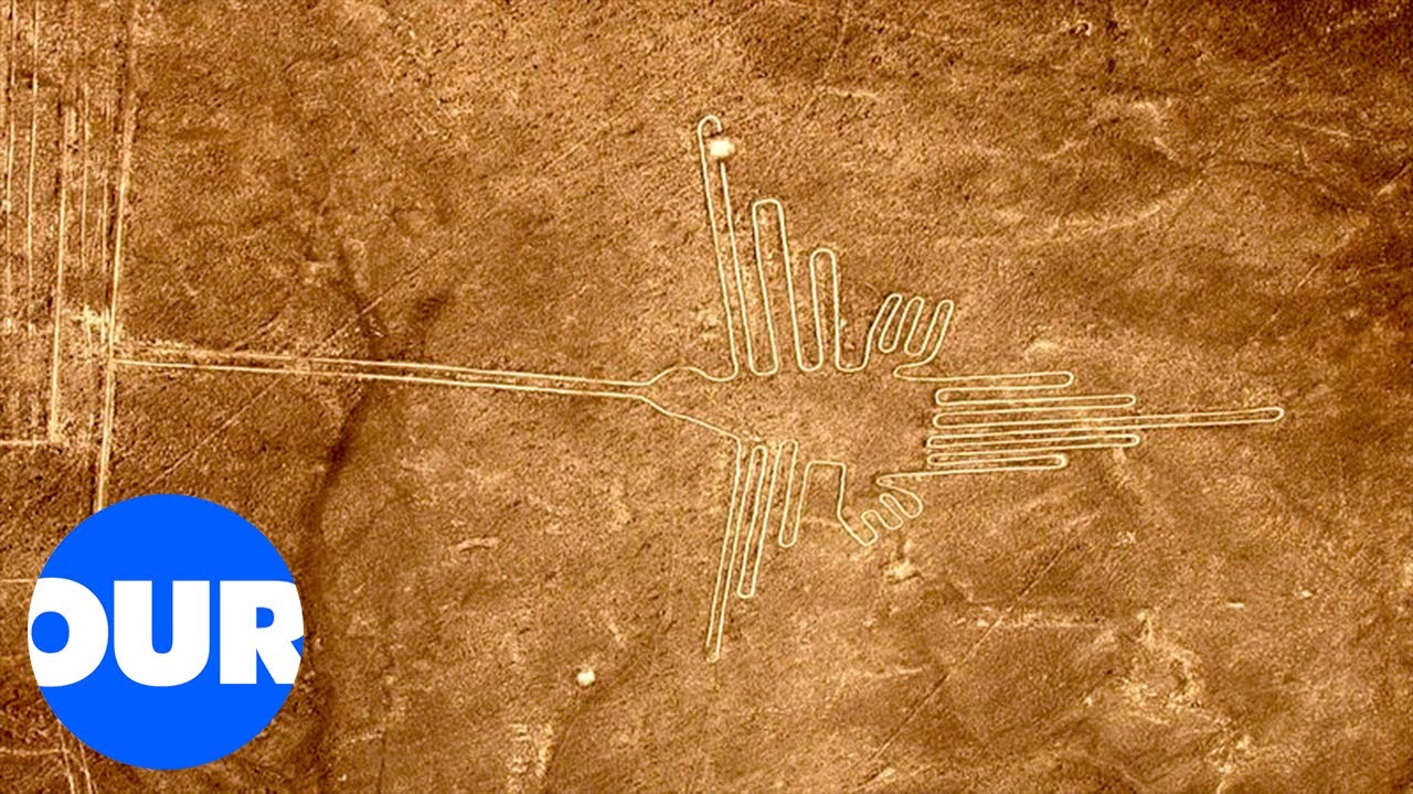 if you ever fly over the deserts of Southern Peru you'll notice distinct white lines against the rusty red background look closer and you'll see some clear shapes straight lines rectangles triangles swirls it seems like they're parts of huge drawings you notice a monkey a whale a condor a hummingbird and whatnot the lines were created more than 2 000 Years Ago by the people of the Nazca culture thanks to a dry climate and strong winds in the desert most of the Nazca Lines are visible today to create them the Nazca people removed the top layer of