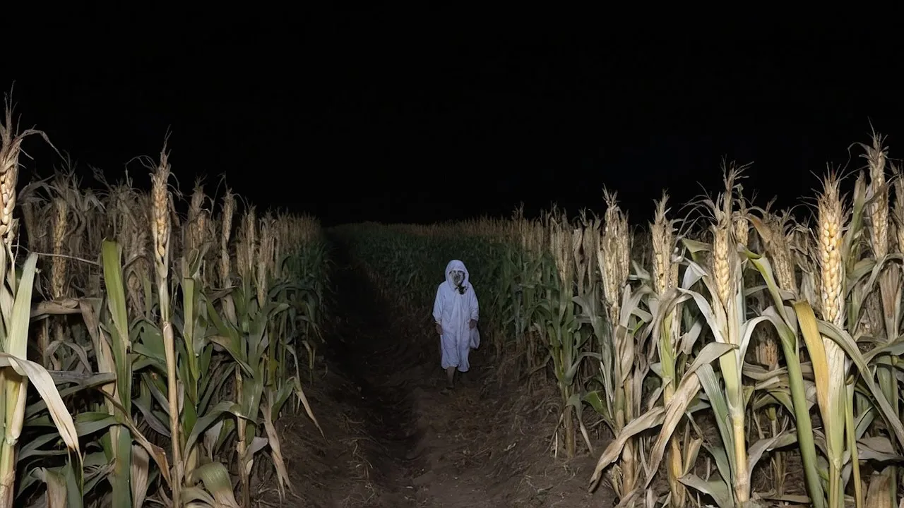 was standing just outside the property line much closer than before a cold chill ran through me I wiped my hands on my jeans and feeling a mix of unease and frustration I decided to approach it I needed a better look I walked to the edge of the field and yelled who's there but as soon as I got close the figure turned and sprinted between a row of corn I went to chase it but as I was turning the corner I literally saw him dive into a row of corn disappearing from sight my heart was pounding