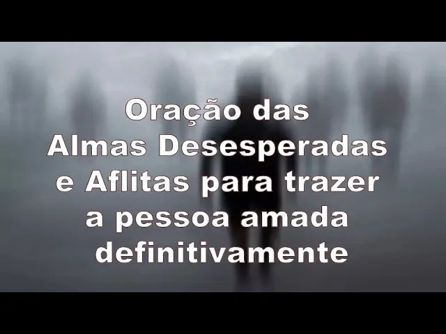 E aí [Música] a oração das almas desesperadas e aflitas para trazer a pessoa amada definitivamente faça somente se você tiver a certeza que quer estar ao lado dessa pessoa até o final da vida Essa oração é muito forte e poderosa para trazer a pessoa amada definitivamente ao seu lado ele vai voltar almas santas e benditas abençoadas de Deus e das três pessoas da Santíssima Trindade vos fostes como eu e eu como voz nem mais nem menos assim fazem o que vos peço e invoco As Treze almas benditas pela força dos corações sagrados e das lágrimas