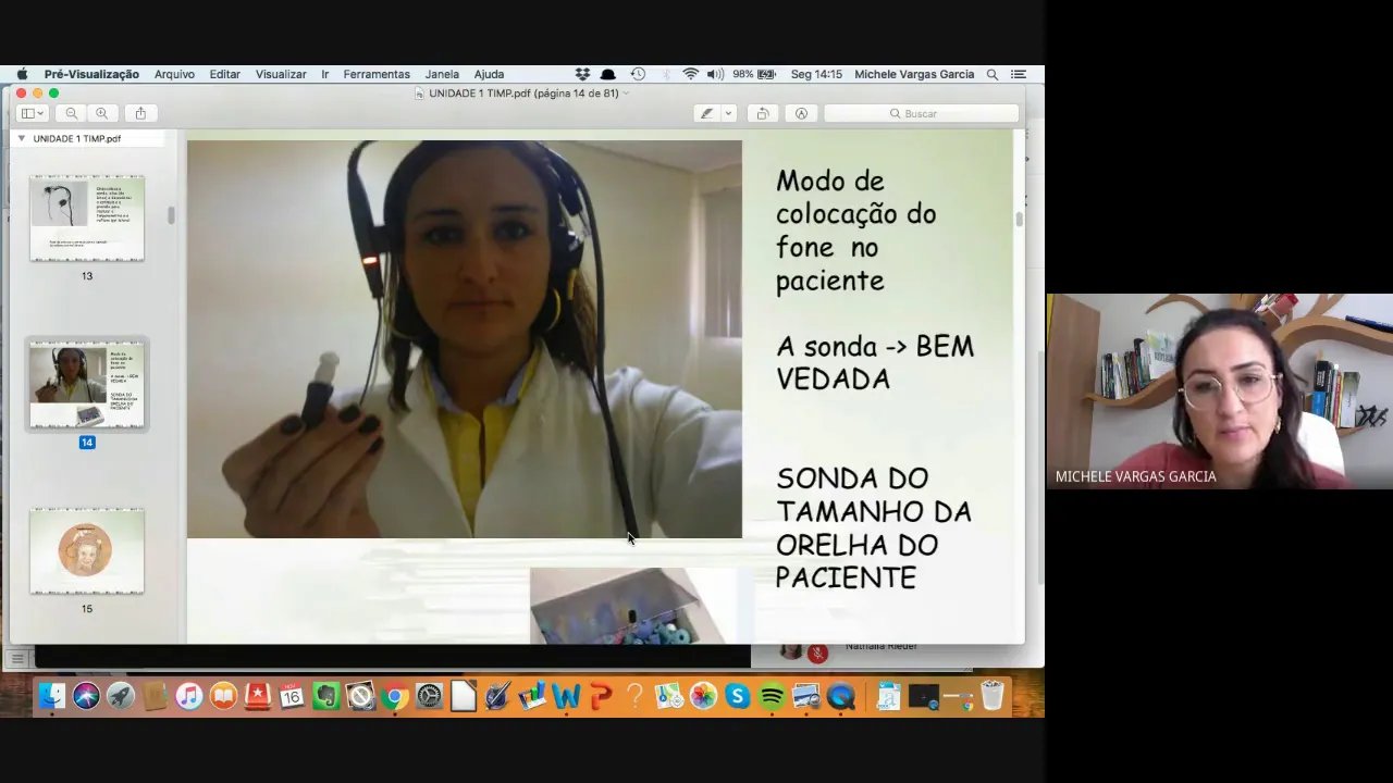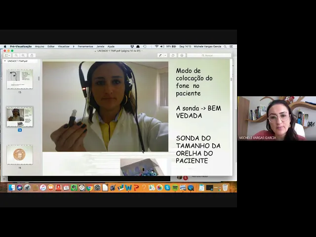 isso que eu tô na terceira aula da timpanometria para que vocês assim digam oque eu sempre apertar eu sei fazer é claro que aqui vamos vídeos é muito diferente do que o manuseio lá na hora se nós tivéssemos na vida sem pandemia nós teríamos lá prática agora de vocês fazerem uns nos outros é mas eu só queria um feedback de vocês porque já é ruim longe e vocês muito silenciosos não me deixa muito segura para seguir adiante E a Isabel falou que tá tudo bem com os exemplos que começa Claro Nicole você abrir o mik