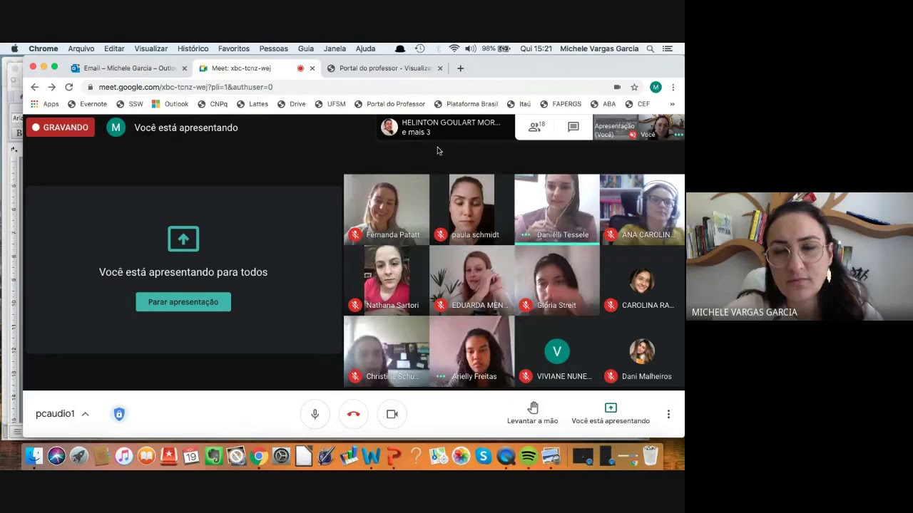 As duas e seis vamos começar considerando a pontualidade de vocês né respeitando a pontualidade de vocês e os colegas que foram chegando a gente vai acertando aqui turma vocês viram que eu tava conversando com a Natália sobre a questão do da gravação e do Google mente né porque a gente tem que usar o link do YouTube para conseguir colocar no mudou então eu vou mandar um e-mail para vocês hoje vou pedir para vocês olharem com Carinho e a Natália me ajuda se precisar porque eu preciso que todos estejam de acordo né em função da imagem