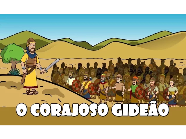 [Música] Olá crianças a história de hoje se chama o corajoso [Música] gibeão o verso para decorar está em Filipenses Capítulo 4 verso 13 e diz tudo posso naquele que me fortalece a mensagem é Deus pode me usar quando confio nele você já ficou confuso ou com medo sem saber o que fazer quando Gideão aprendeu a confiar ao invés de ter medo coisas emocionantes começaram a acontecer 40 anos após Débora e Barque terem derrotado Cícera Israel se esqueceu de Deus e voltou a adorar Ídolos por causa disso por sete anos os midianitas e amalequitas causaram problemas