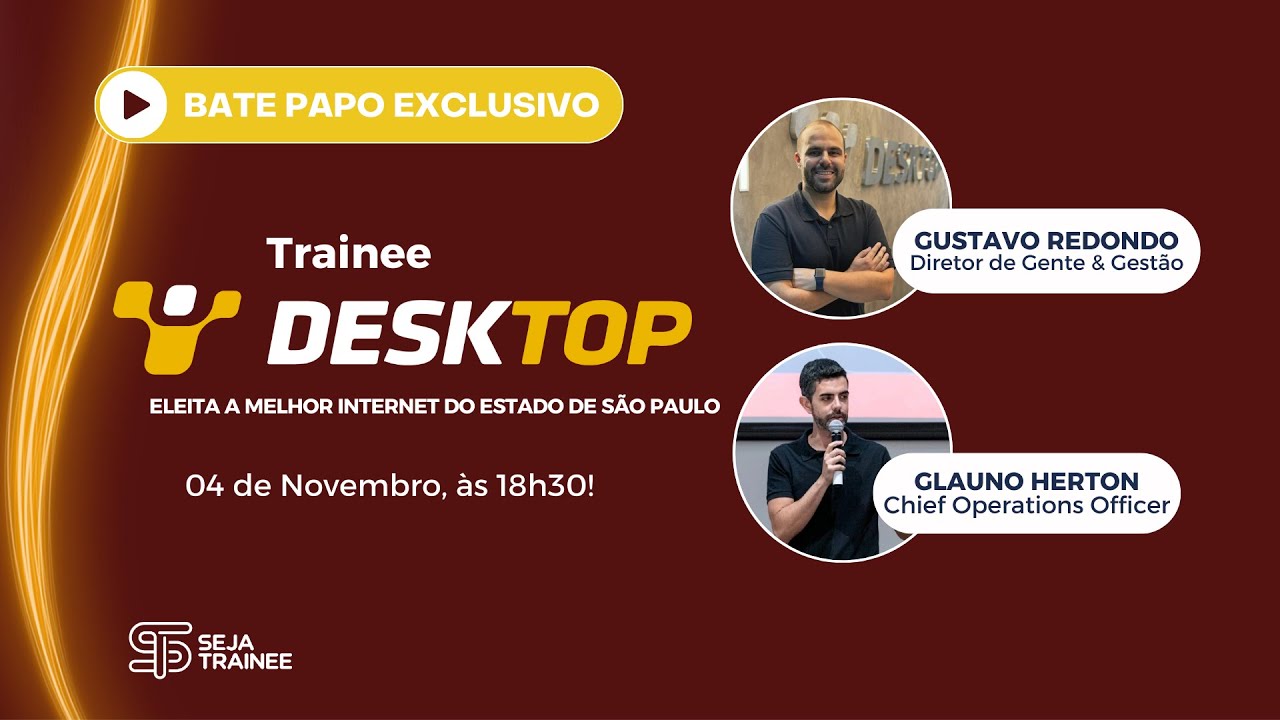 carreira aqui como diz o Augusto ficar aqui 10 15 20 anos eu brinco com os trenos quando eles entram que eu falo assim ó meu sonho é ver você Sentado lá na cadeira de diretor né então é isso aí é isso e as pessoas confundem Às vezes o estágio né que tem 12 a 24 meses com trini só que no fundo train ele pode ter essa promoção ao final não é se eu vou ficar na empresa se eu vou ser promovido e para onde que eu vou né ten um pouco essa expectativa agora Só uma