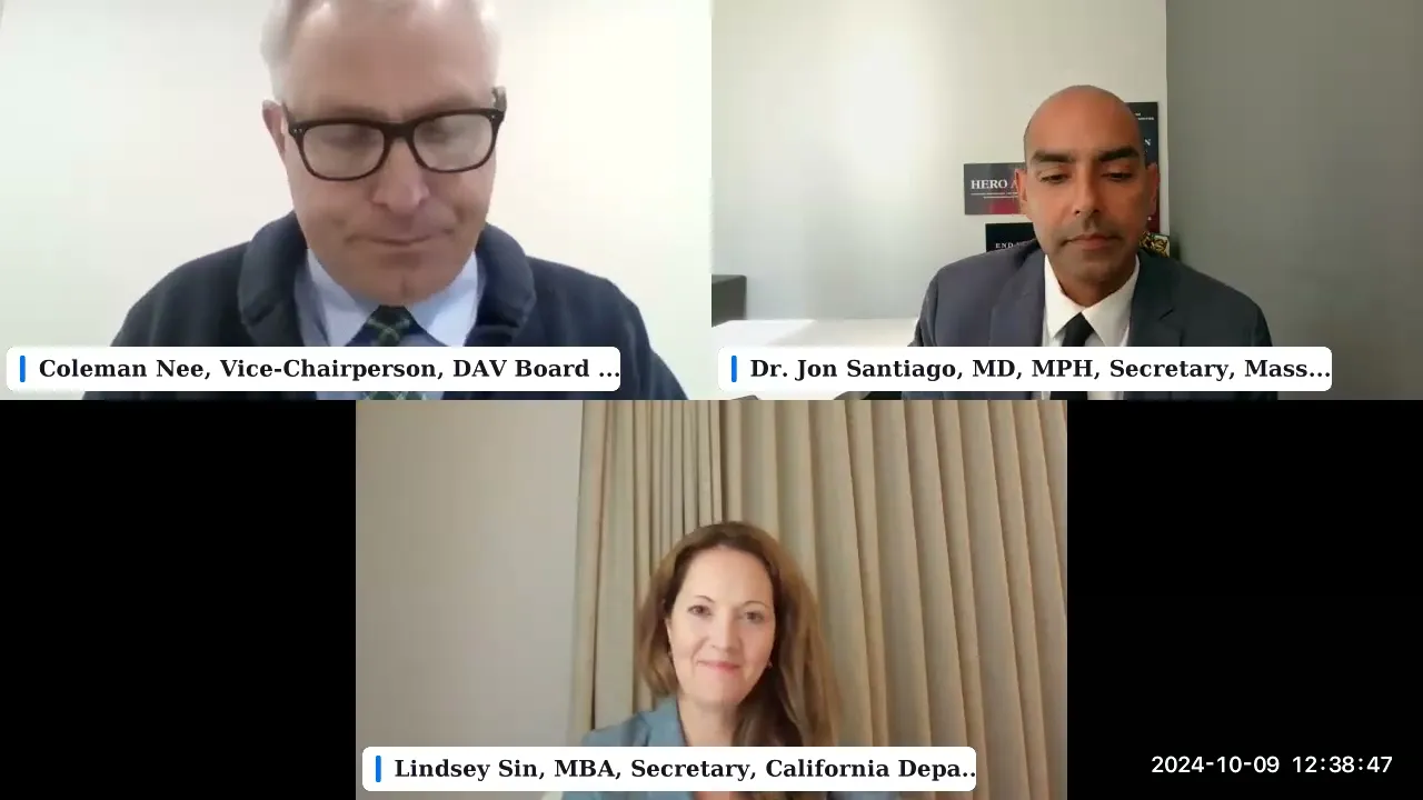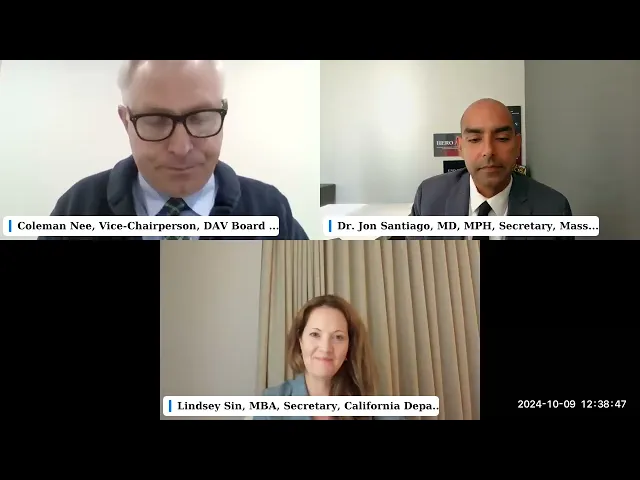 compelling conversation I do want to close by saying that the purpose of one of the purposes of the daav Distinguished speakers here series is is to uh move from discussion also into action and I think that both of our secretaries here have described action steps that are being taken at the local level um and innovations that are being taken and I think there are lots of opportunities for others to contribute to this work whether they're in other states or in California or Massachusetts to partner with their state agencies to Parker partner with their local vsos