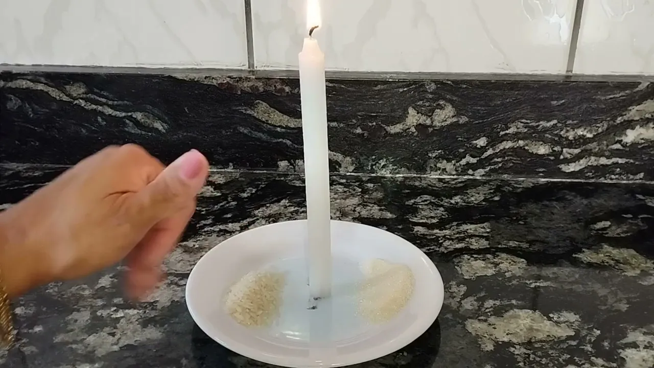 de um pratinho mas e Vai acender tem mas eu tô passando a situação assim é ruim na minha casa enfim as coisas não dão certo é um quebra-quebra um briga briga enfim quero acalmar os ares né aqui na minha casa pode fazer também aí você não escreve nome nenhum na vela nem no nos dois papelzinhos que eu pedi Tá se você for fazer diretamente para alguém você escreve o nome dessa pessoa no papelzinho a lápis você vai colocar o papelzinho um aqui vai precisar de uma colher de arroz cru vai cobrir o papelzinho com a