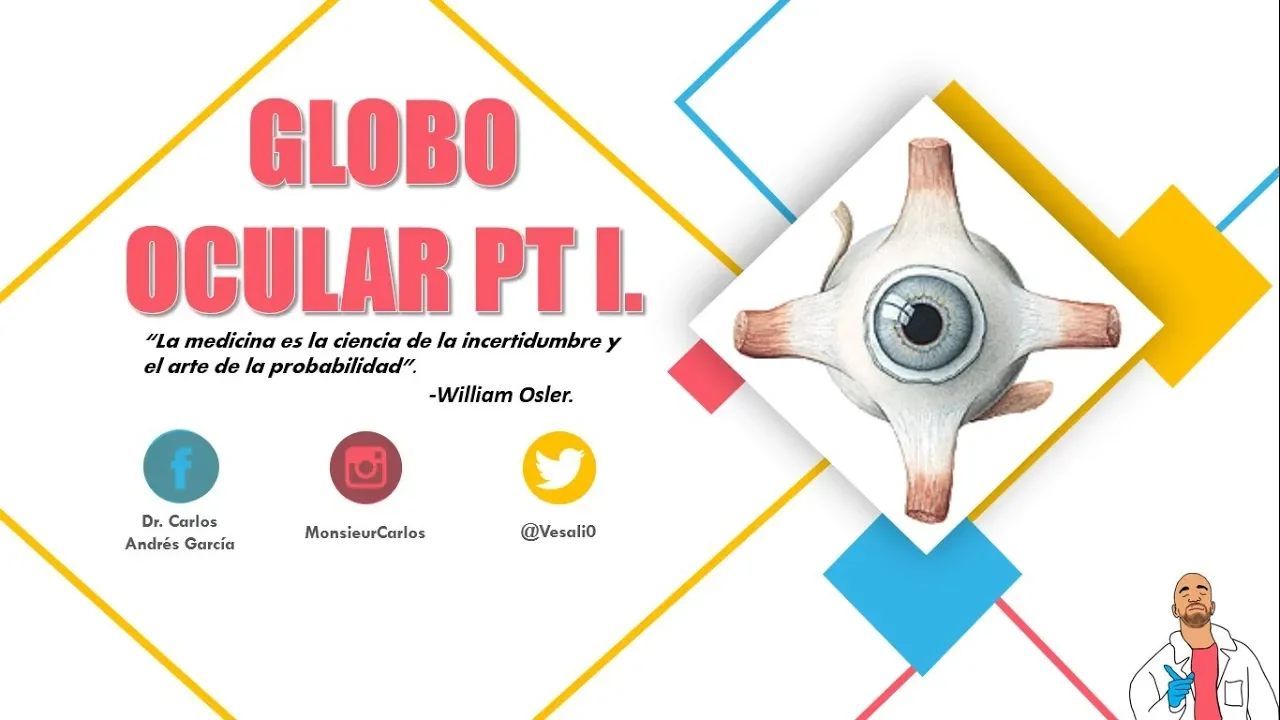 [Música] [Música] muy bien entonces en la clase de hoy vamos a hablar sobre el globo ocular la primera entrega de esta vídeo La verdad no sé En cuántos vídeos lo vaya a dividir lo más probable es que sean tres por lo que a pesar de que el ojo es una región anatómica relativamente pequeña es un tema bastante complejo y se nos complican algunos Así que en este vídeo vamos a decir lo más importante y como siempre resaltando lo que nos pueden tomar en alguna lección o examen los temas que vamos a ver en esta primera