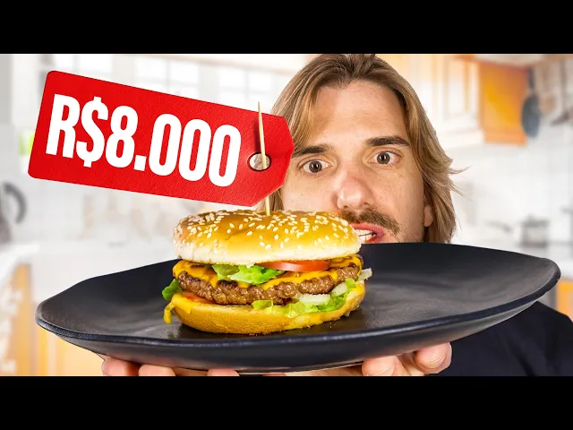Agora vamos voltar ao hambúrguer. Quanto você acha que esse mesmo hambúrguer que custou 25 reais e 90 centavos custaria se a gente precisasse fazer todos os ingredientes do zero. Foi exatamente isso que o youtuber americano fez e o hambúrguer dele custou por volta de oito mil reais.