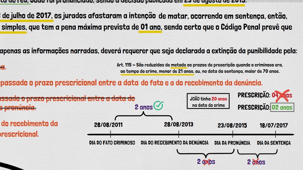 julgado para todas as partes ou seja o cálculo é para frente no nosso exemplo não poderá decorrer mais de 4 anos entre a publicação da decisão e o trânsito em julgado para acusação e defesa sob pena de configurar a prescrição da pretensão punitiva intercorrente por fim não se esqueçam que os prazos de prescrição serão reduzidos pela metade quando o agente criminoso era ao tempo do crime menor de 21 anos ou na data da sentença maior de 70 anos no próximo vídeo aprenderemos mais sobre a prescrição da pretensão executória e claro se você gostou do nosso