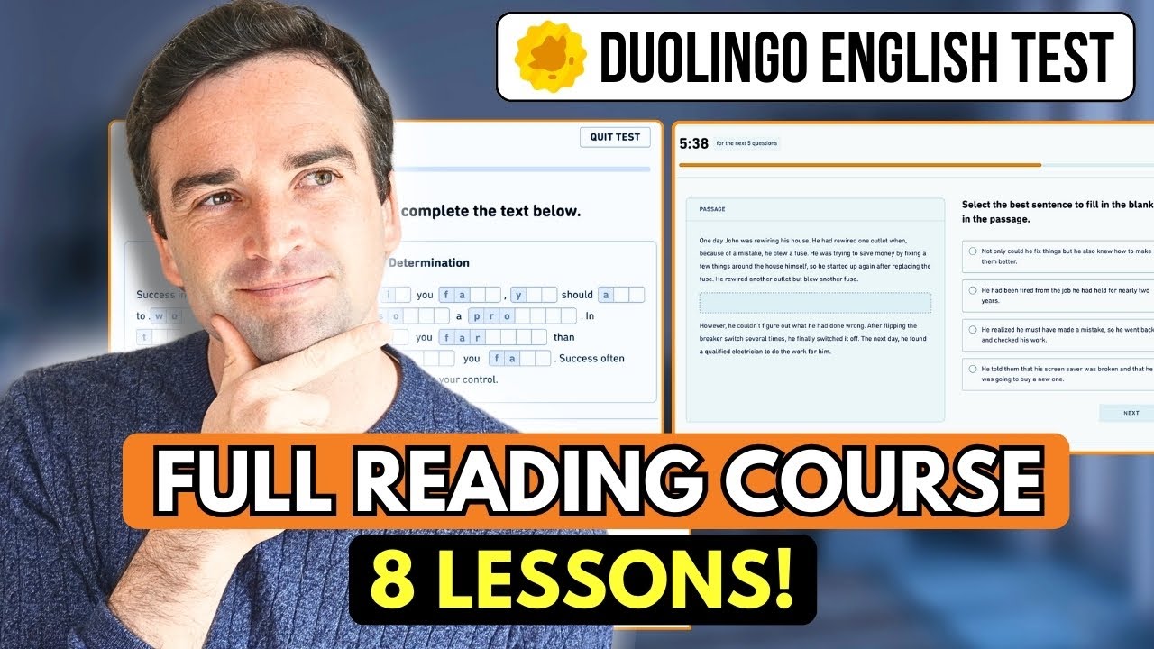this video right here because it will help you with the speak about the photo question type which of course is another speaking question on the dingo English test so I'll see you here right now hi friends I'm teacher Luke and welcome back to another full du lingo English practice test this is practice test number seven with the new format that was introduced in early 2024 but This practice test is a bit different than the other ones I've made because this one has extra difficult questions so if you're looking to get a very high score on