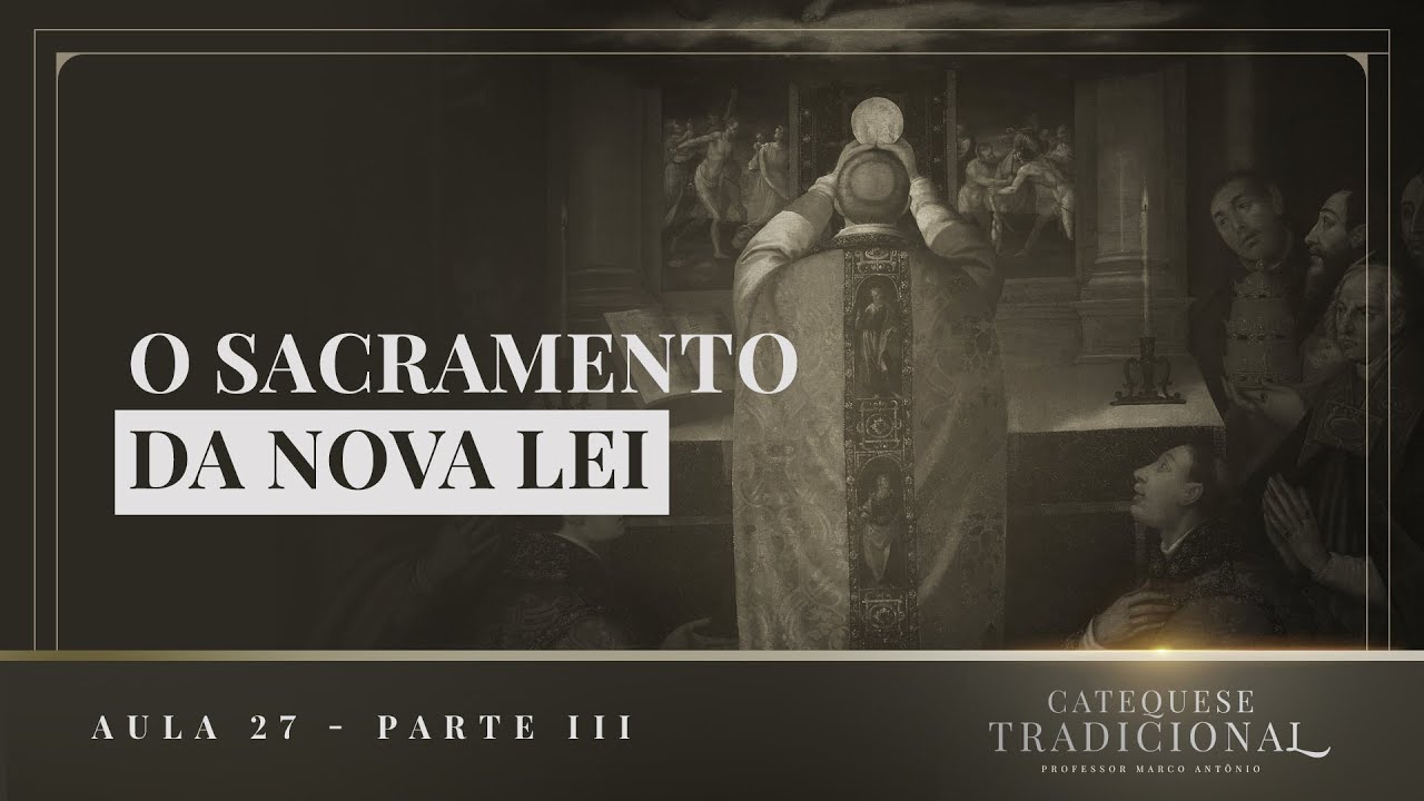 [Música] muito bem meus caros sejam todos bem-vindos vamos dar continuidade então aos nossos estudos do catecismo de São Pio X e voltando ao local do grande ciclo dos sacramentos né que é é um dos uma das partes do catic ismo de São Pio 10 nós vamos ter que parar um pouco mais e olhar com mais detalhe certas características e nesse estudo nosso já dentro do Sacramento da Eucaristia eu havia falado PR os senhores que esse Sacramento nós perderíamos algum tempo nele na verdade ganharíamos tempo né porque nunca é demais a gente estudar os pormenores do
