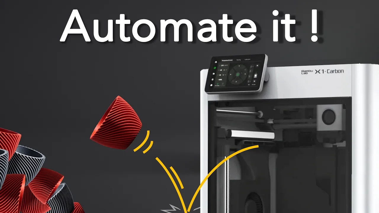 do you want to automate your bamboo lab P1 or X1 printer in a simple and effective way using only your slicer and stock Parts great because in this video I will share all my secrets for successful print automation this includes things like how to fix the purge line issue safe ejection sequences for small and big Parts how to Loop prints and many more tips and tricks I have learned by Auto printing this e cup more than 4,000 Times Printing through day and night without picking off parts or restarting files let's get started the basic print automation principle is always the same we have a start sequence printing the model the ejection phase and looping everything to start again all in the shape of one basic G-Code file we will begin with a startup sequence if you have ever started a G-Code file from your SD card you notice that your printer does not ask whether you want to level your beted or do the lighter calibration it just does it all like a naughty little Rebel which in our case is unnecessary it also takes a total of 7 minutes which can be optimized to modify the start sequence in bamboo Studio click on printer settings and go to the machine gcode tab to copy the start gcode this interface is horrible so let's copy all of that into a new text file and open it with your favorite text editor like notepad++ we will briefly go over what to comment out and add for the X1 and P1 all modified files are also Al downloadable below but roughly understanding these G-Code Parts is important so don't skip it hit the pause button when needed we will start by disabling the unnecessary first layer skin by adding a semicolon in front of each line in notpad Plus+ you can multiply your cursor by pressing shift alt and down arrow perfect next we can disable the filament perge if you want to use your AMS then leave this part in if not you can comment Out Lines 91 to 102 I prefer turning that violent plastic pooping off because we don't use the scanner for the filament calibration checking its Clarity is useless so out it goes the P1 of course doesn't have this G-Code part onto the bed leveling you really only have to do this when you move your printer or change the bed sheet if you uncheck bed leveling with a 3mf file the printer will still do a single leveling move in the middle of the build plate by commenting the whole B leveling part out this is lost so let's add it back in using the g28 command for the P1 we have to add a G1 move command with the printer Center coordinates x128 and Y 128 in the line above we also want to disable the nozzle heating to prevent any unnecessary nozzle leaking we will add this back later the resonance frequency check is also only needed occasionally and sadly it has to leave us as well I rarely do these basic calibrations but if you feel the need I recommend doing them directly through the printers menu next up is the Annoying nozzle load line which is also useless for us has to go find a new home one thing I always do is reducing the Z offset to add more first layer Squish and adhesion setting it to 0. 08 mm works best for me we definitely don't want to do the K value calibration so let's comment out a huge chunk of code from line 33 to 642 comment outline 646 to 648 as well to make sure no old calibration parameters get saved to reduce unnecessary nozzle oozing we will split the heat up command into two first is the m19 command to wait for the nozzle to heat up to the first layer temperature minus 20° the print head will start moving right after this with the following M14 command the nozzle will heat up to full temperature during the first movements I promise this will make sense in a minute the final thing left is the perch line which is important to build up nozzle pressure for a clean print start but annoyingly doesn't get pushed off with a print we will comment this out and solve this issue later now I know this was a lot of information to take in but you of course only have to do these changes once just copy your new start g code or my downloadable code back into bambo studio and then save the new start sequence in the printer's profile this time I will let my German creativity run wild and give it a fitting name perfect effect the new startup does only the essential commands like homing and cleaning the nozzle it also only takes around 1 minute and 40 seconds to complete awesome when you first try out your new code use an old build plate plus nozzle and keep your fingers on the off switch in case something goes wrong I'm definitely not speaking out of experience because I have never damaged anything during the testing let's continue before we start with the print here's a little bonus tip for the filaments settings with the door open anyways you can reduce the chamber fan speed for the printer to be more quiet here you can also add custom K values with the m900 command let's continue with the model printing if you like that detailed type of content so far hit that like button subscribe or leave a comment below let's finally print the E cup model with a new startup sequence and take a closer look at the beginning of the print as you can see the missing perge line leads to an unclean print start now you could say that you don't care but producing prints with a bottom that looks like this will book you a ticket straight to 3D printing jail let's add something I call an in model perge to fix this first we will move the eup to the front for an easy push off this is the eup file we optimized in the last video which already has quite a few of these yellow modifiers we will add another one by right clicking on the model then add modifier and selecting the cylinder shape start resizing it to the size of your first layer and around 0 . 6 mm height move it to the center of your print and 0.