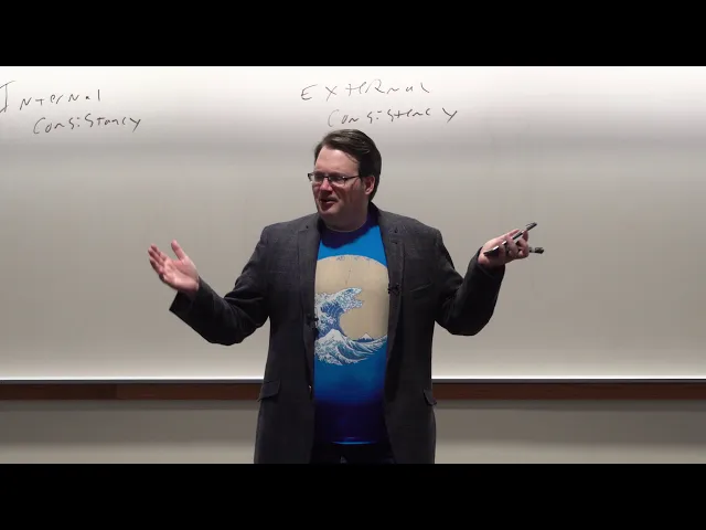 should not be in the order they Actually are. Regardless, let's talk about internal versus external consistency. Or logic. I should just say logic, because I can spell that. Internal logic, internal consistency, is usually really important for most stories. Not for all stories. In fact, some humor stories make a big deal out of their internal logic just being haywire, and that's a feature rather than a bug. But for most of the time, when we talk about internal consistency, this is where the internal logic of your story fits and is consistent with itself. If this character puts